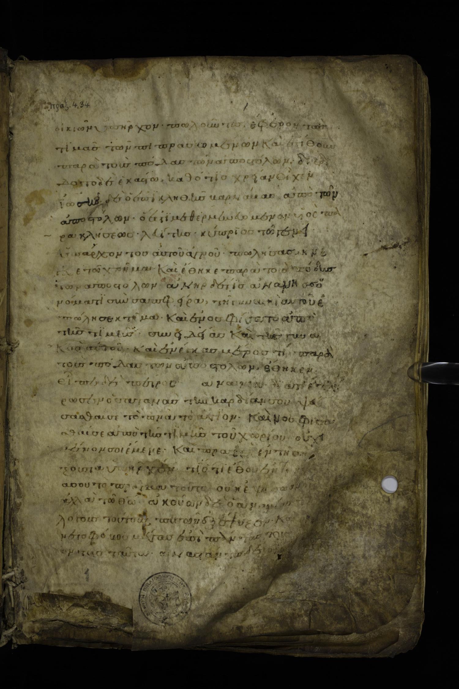 Fourteenth century minuscule of the Apostolos and Paul on parchment; 175 leaves, 1 column, 24-26 lines per column. Images were taken at the National Library of Greece in Athens.