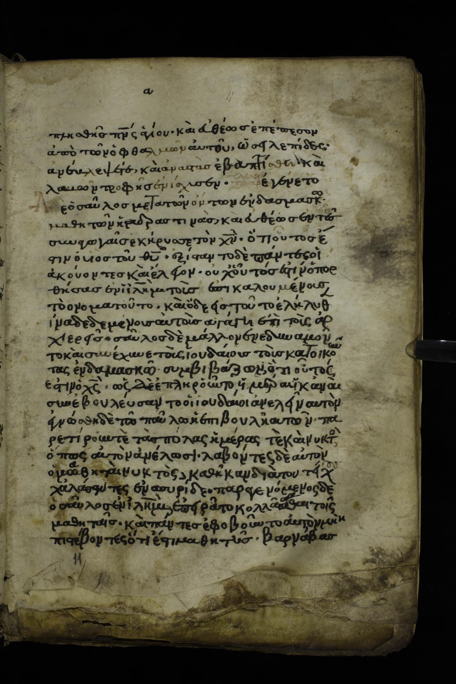 Fourteenth century minuscule of the Apostolos and Paul on parchment; 175 leaves, 1 column, 24-26 lines per column. Images were taken at the National Library of Greece in Athens.