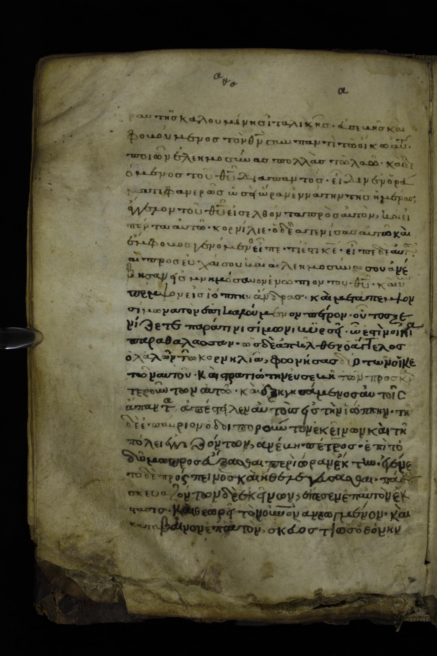 Fourteenth century minuscule of the Apostolos and Paul on parchment; 175 leaves, 1 column, 24-26 lines per column. Images were taken at the National Library of Greece in Athens.