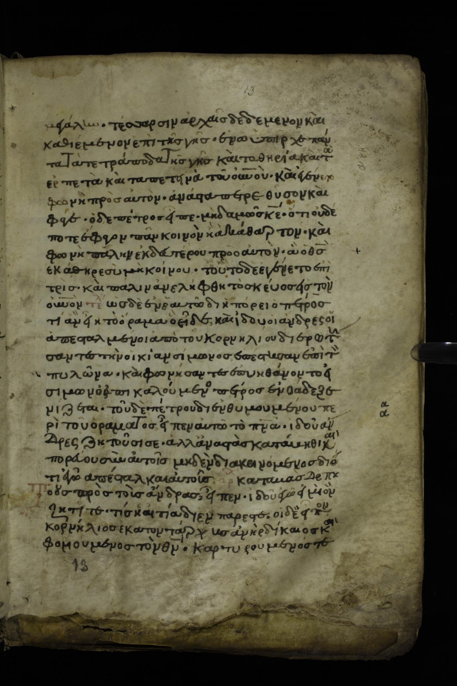 Fourteenth century minuscule of the Apostolos and Paul on parchment; 175 leaves, 1 column, 24-26 lines per column. Images were taken at the National Library of Greece in Athens.