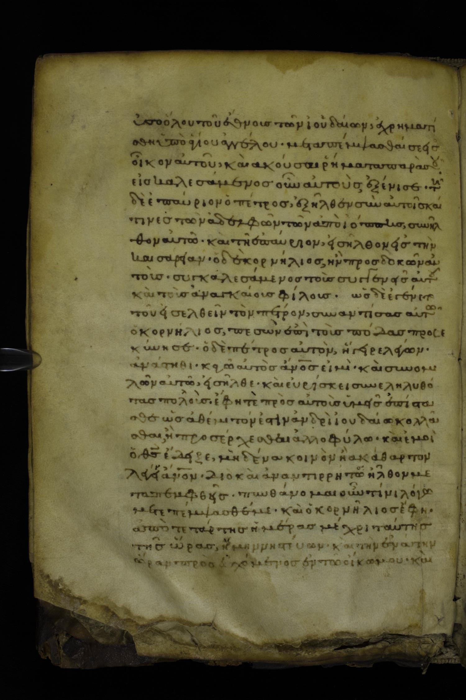 Fourteenth century minuscule of the Apostolos and Paul on parchment; 175 leaves, 1 column, 24-26 lines per column. Images were taken at the National Library of Greece in Athens.