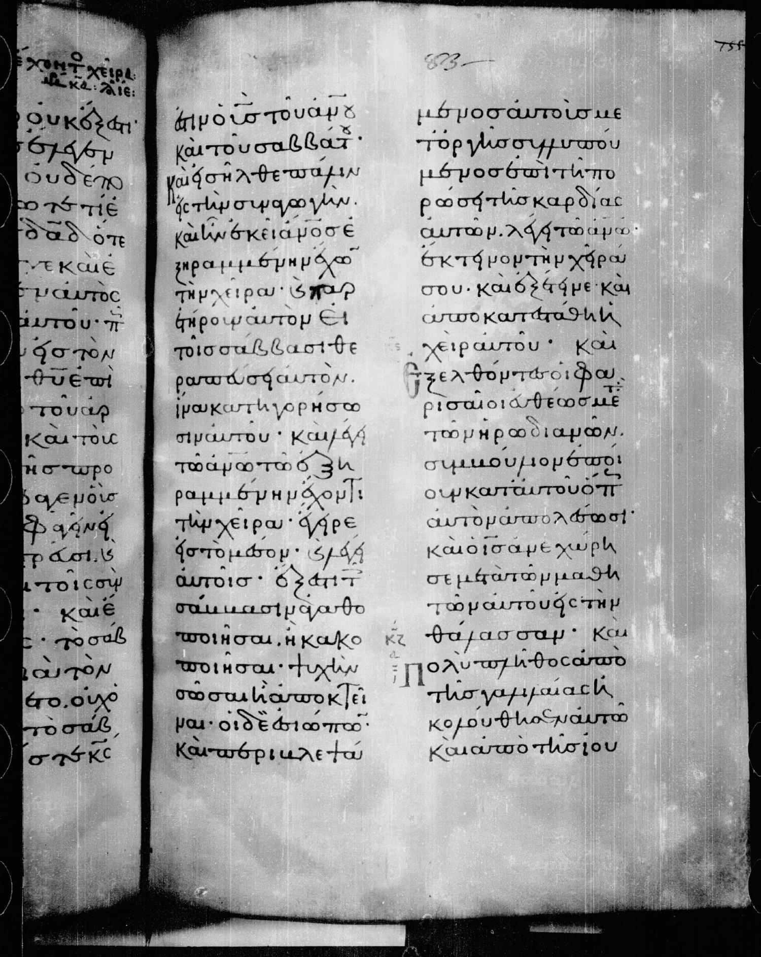 καὶ λέγει αὐτοῖς Ἔξεστιν τοῖς σάββασιν ἀγαθο¦ποιῆσαι ἢ κακοποιῆσαι, ψυχὴν σῶσαι ἢ ἀποκτεῖναι; οἱ δὲ ἐσιώπων.