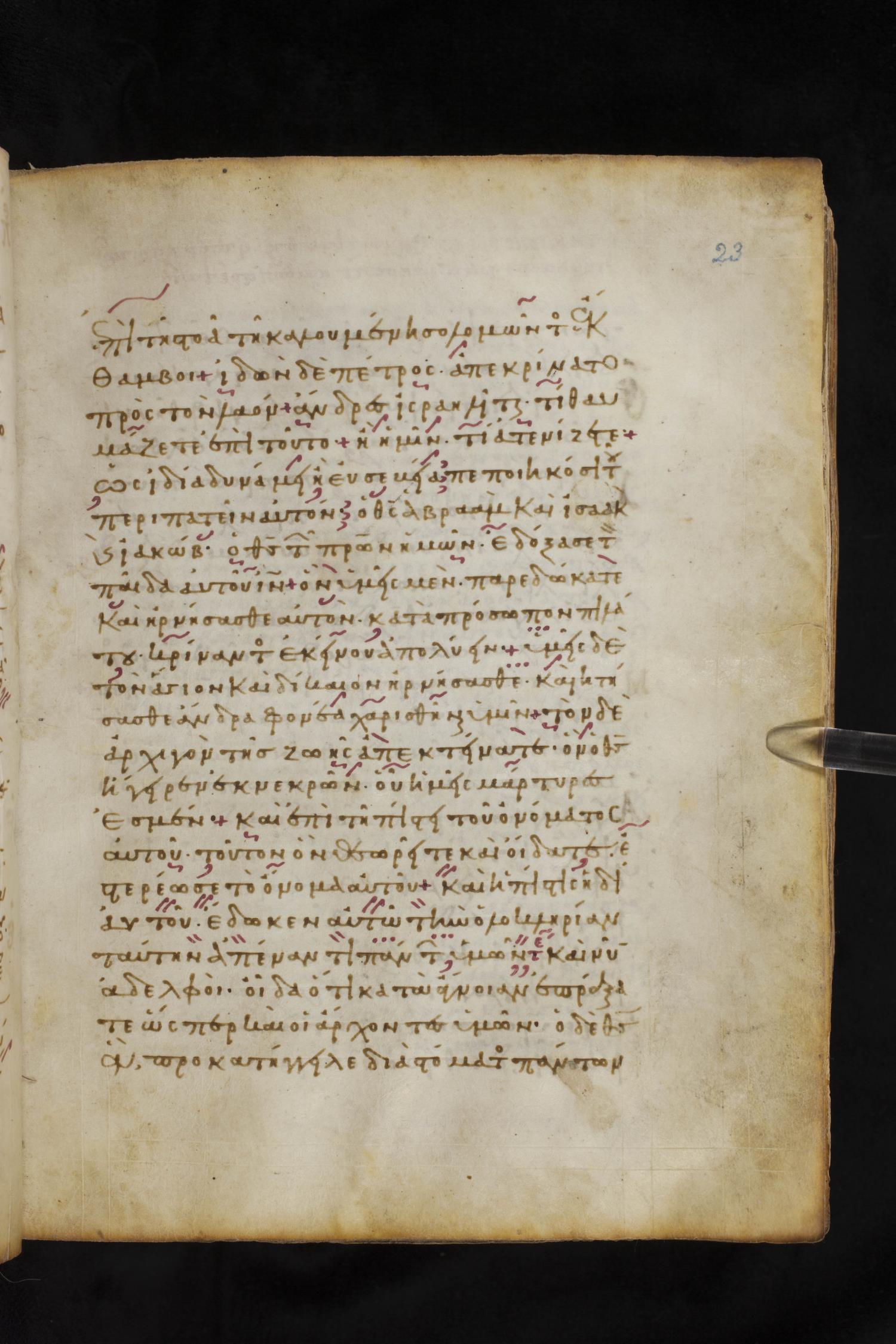 Eleventh century minuscule of the Apostolos, Paul, and Revelation on parchment; 327 leaves, 1 column, 22 lines per column. Images were taken at the National Library of Greece in Athens.