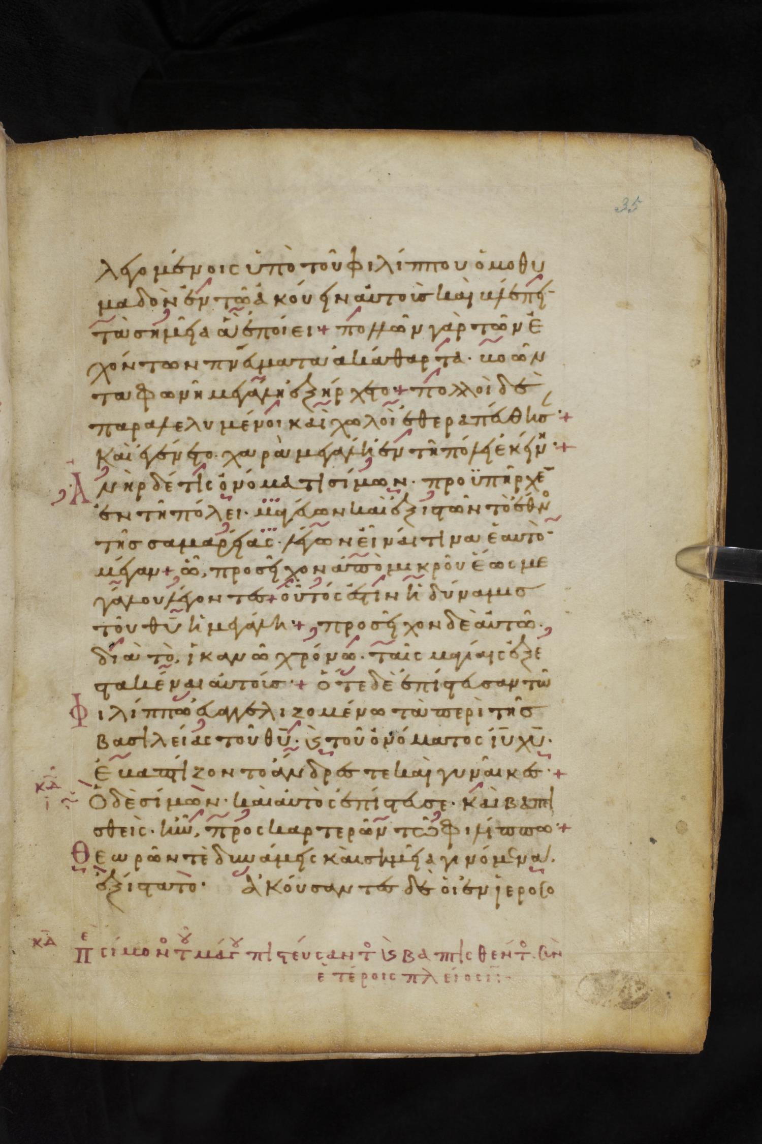 Eleventh century minuscule of the Apostolos, Paul, and Revelation on parchment; 327 leaves, 1 column, 22 lines per column. Images were taken at the National Library of Greece in Athens.
