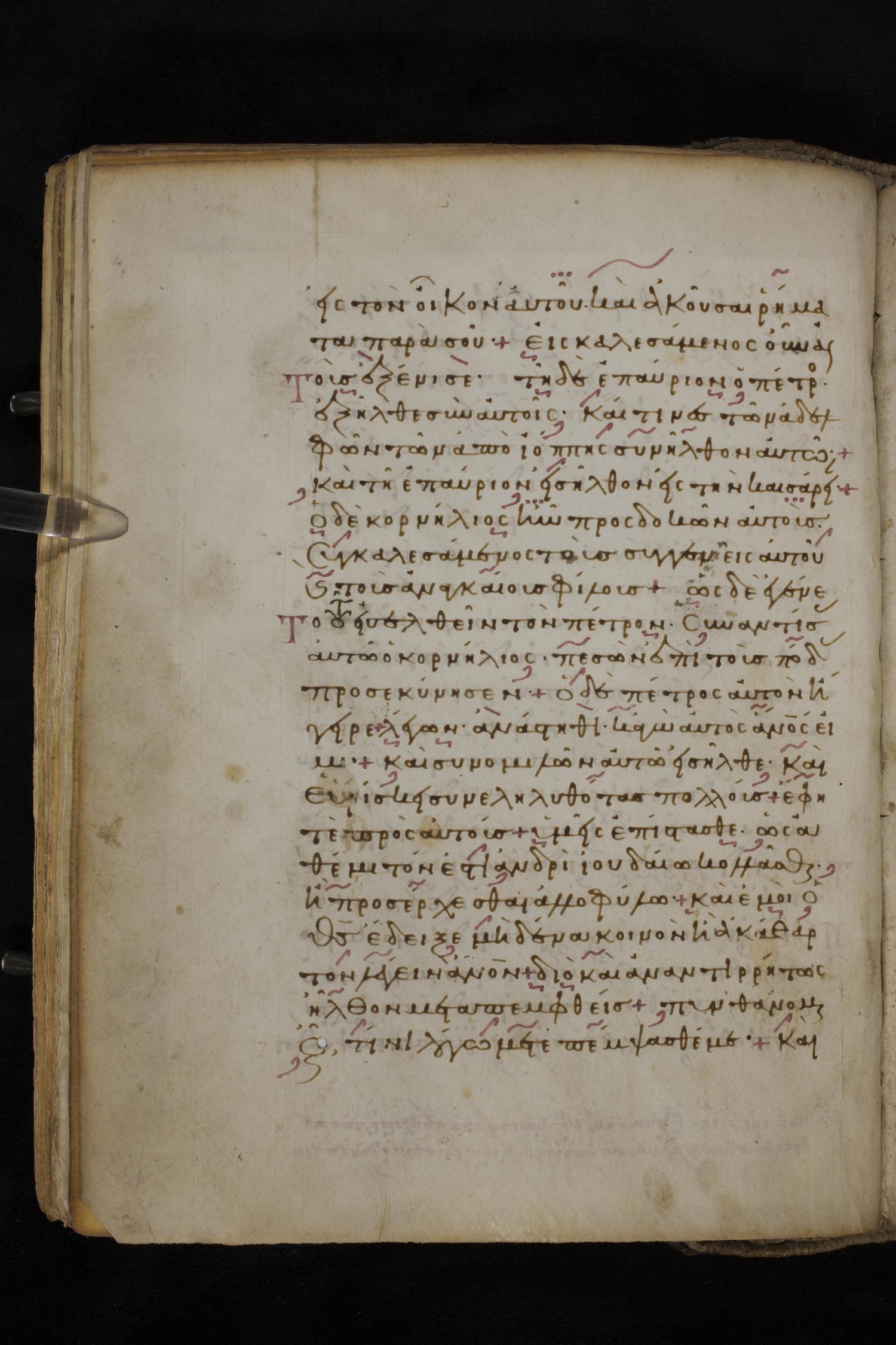 Eleventh century minuscule of the Apostolos, Paul, and Revelation on parchment; 327 leaves, 1 column, 22 lines per column. Images were taken at the National Library of Greece in Athens.