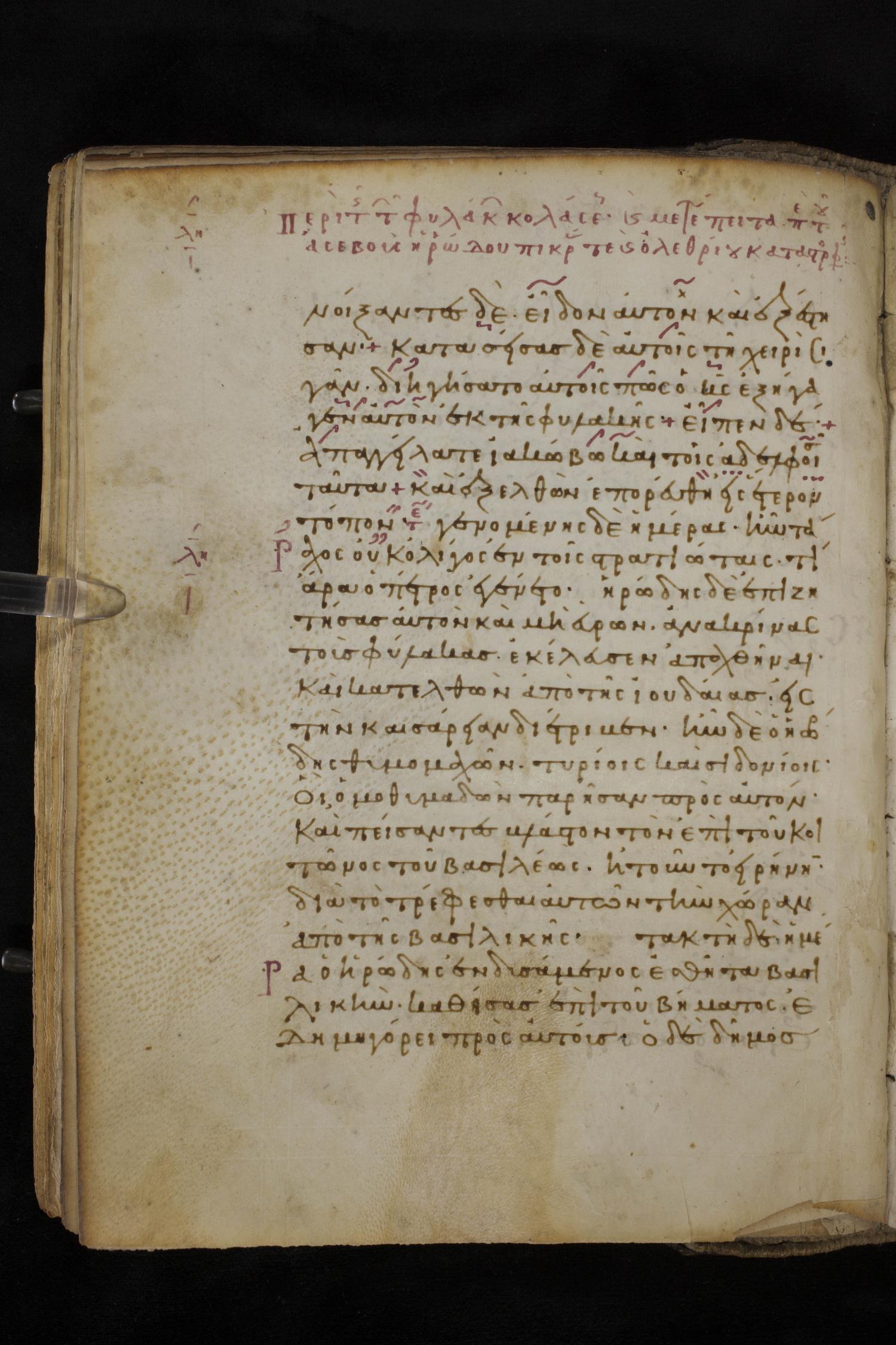 Eleventh century minuscule of the Apostolos, Paul, and Revelation on parchment; 327 leaves, 1 column, 22 lines per column. Images were taken at the National Library of Greece in Athens.