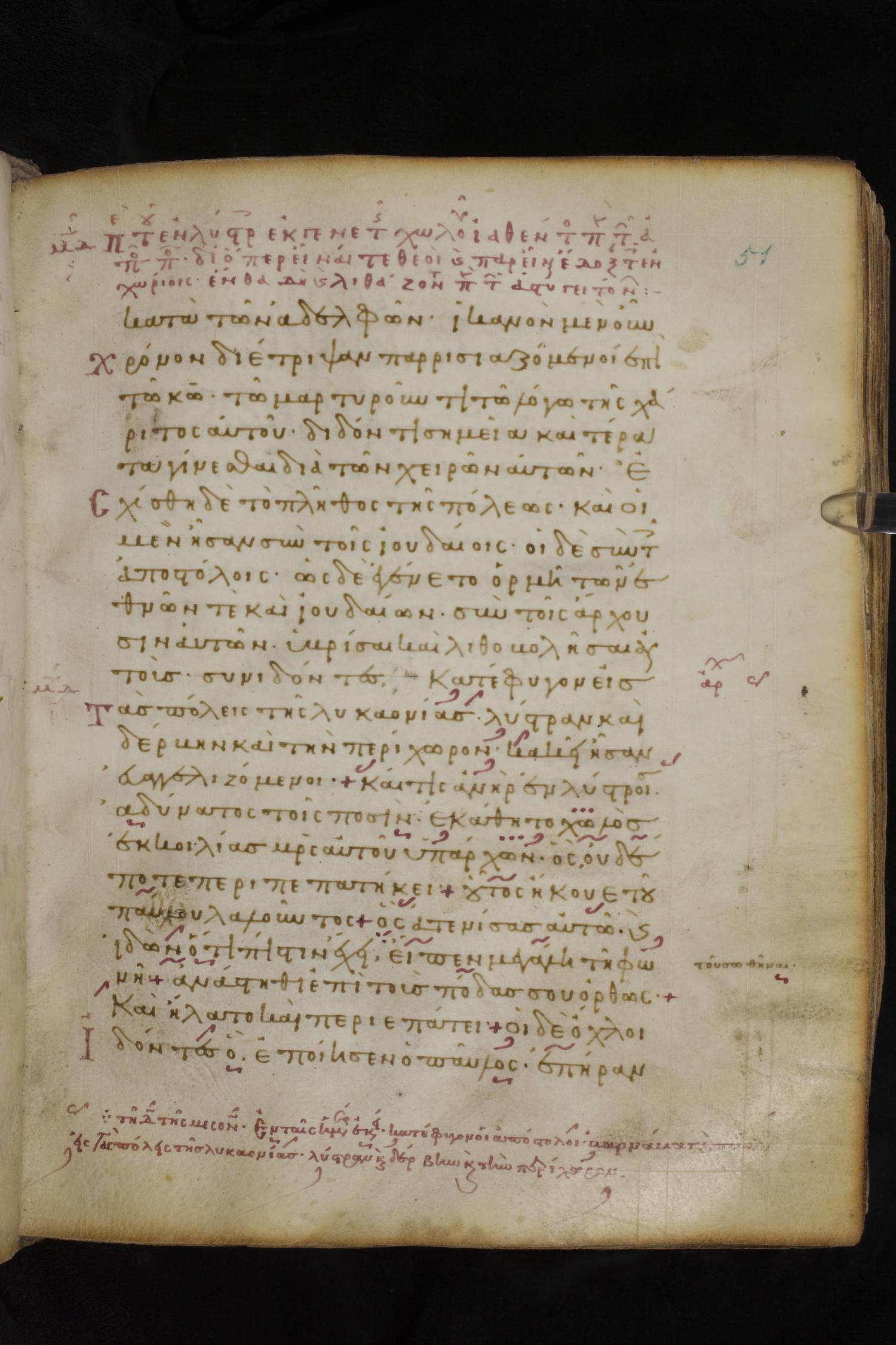 Eleventh century minuscule of the Apostolos, Paul, and Revelation on parchment; 327 leaves, 1 column, 22 lines per column. Images were taken at the National Library of Greece in Athens.