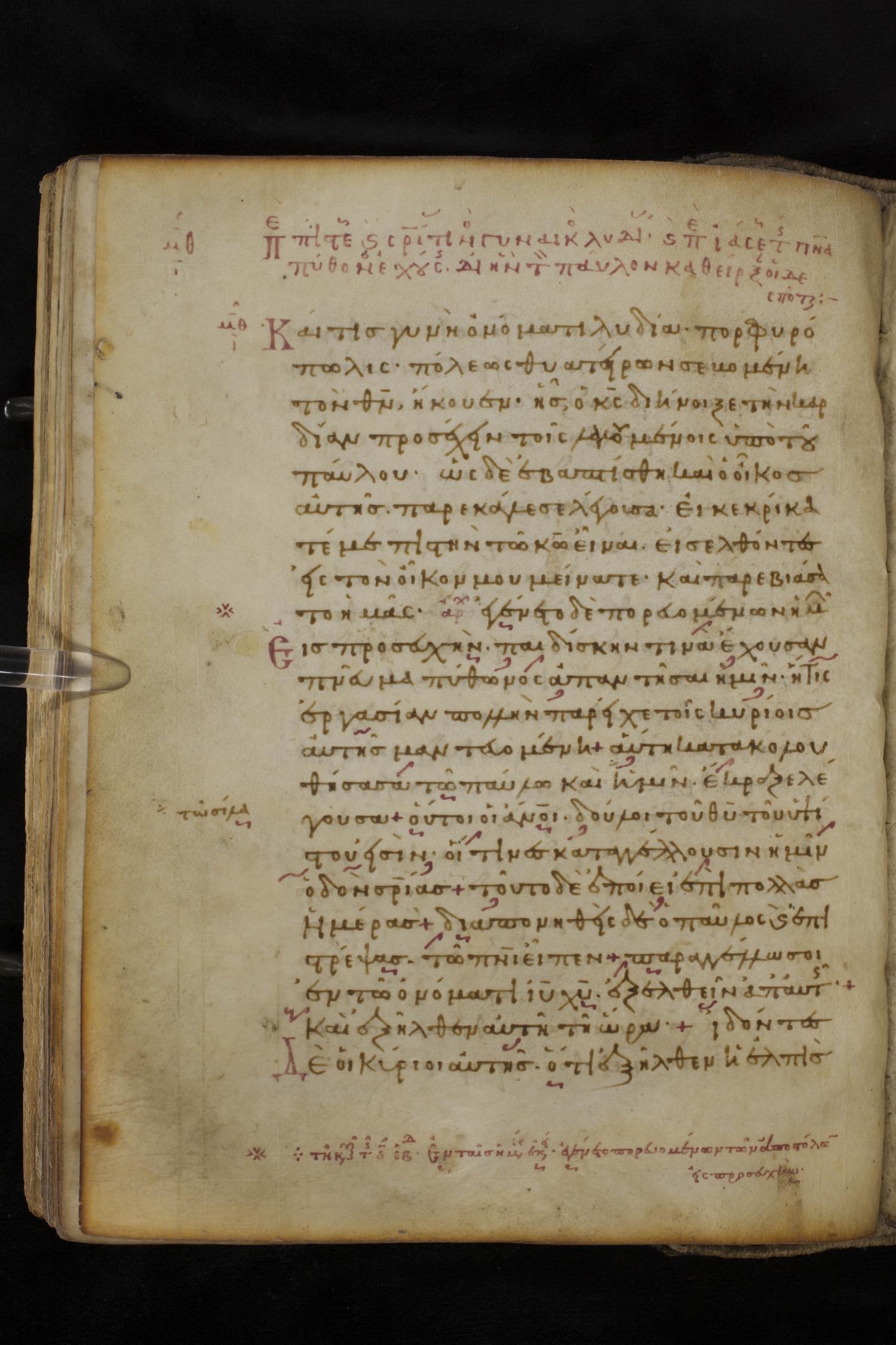 Eleventh century minuscule of the Apostolos, Paul, and Revelation on parchment; 327 leaves, 1 column, 22 lines per column. Images were taken at the National Library of Greece in Athens.
