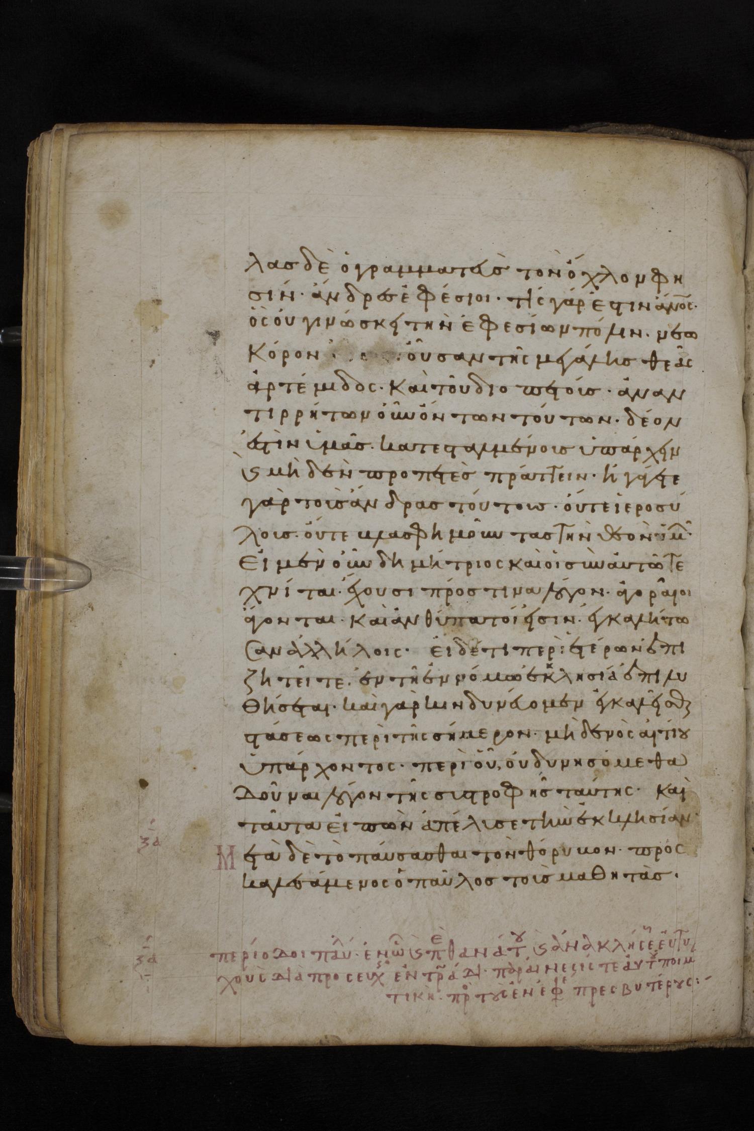 Eleventh century minuscule of the Apostolos, Paul, and Revelation on parchment; 327 leaves, 1 column, 22 lines per column. Images were taken at the National Library of Greece in Athens.