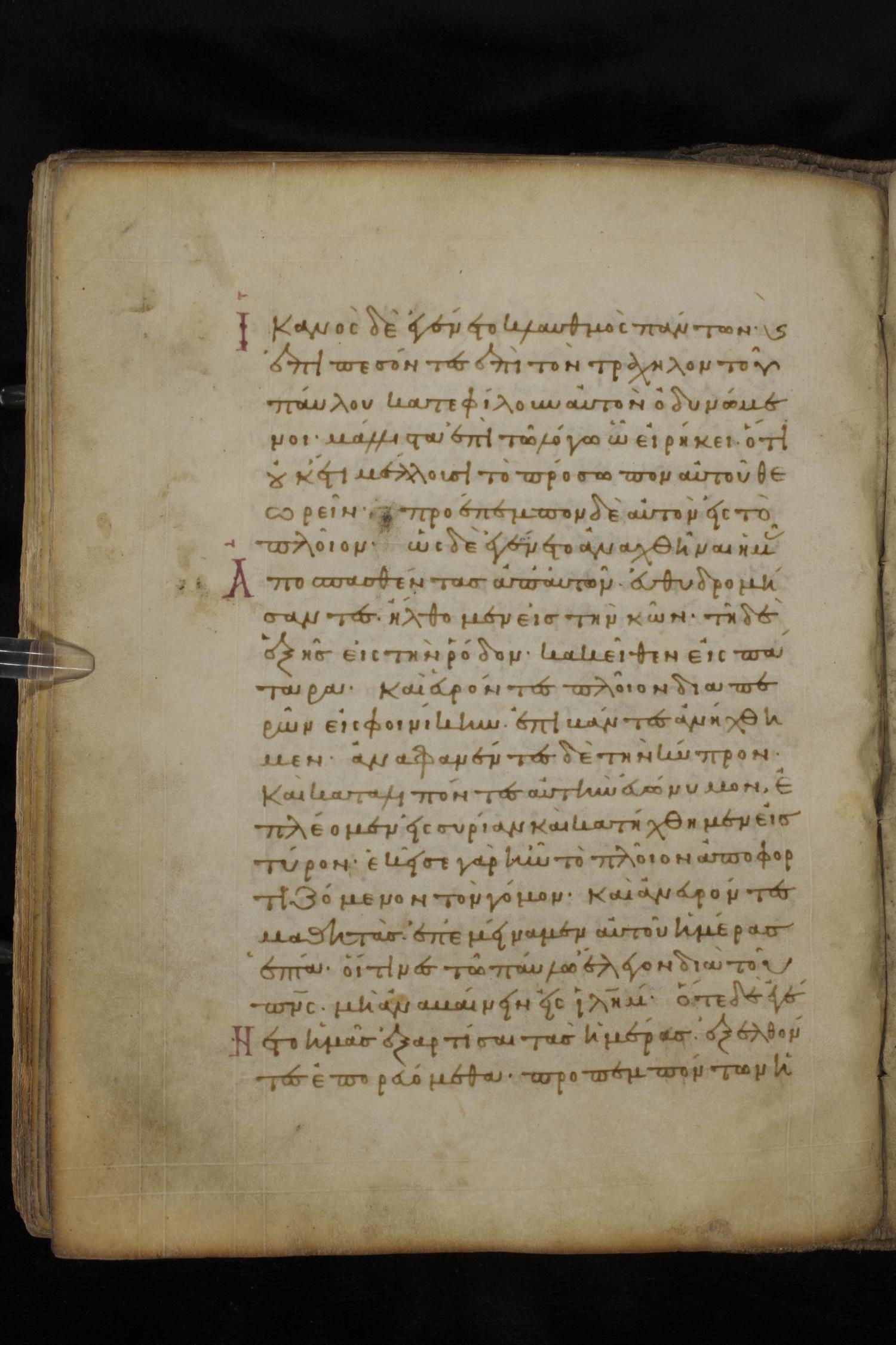 Eleventh century minuscule of the Apostolos, Paul, and Revelation on parchment; 327 leaves, 1 column, 22 lines per column. Images were taken at the National Library of Greece in Athens.