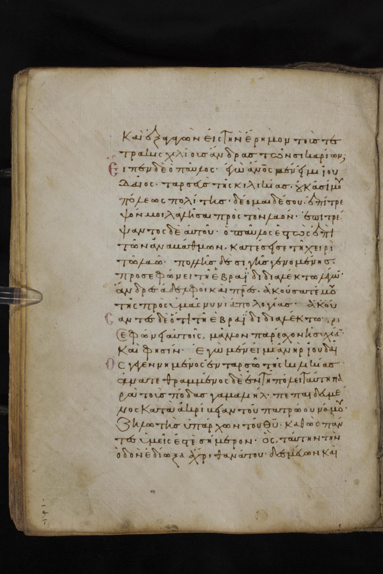 Eleventh century minuscule of the Apostolos, Paul, and Revelation on parchment; 327 leaves, 1 column, 22 lines per column. Images were taken at the National Library of Greece in Athens.