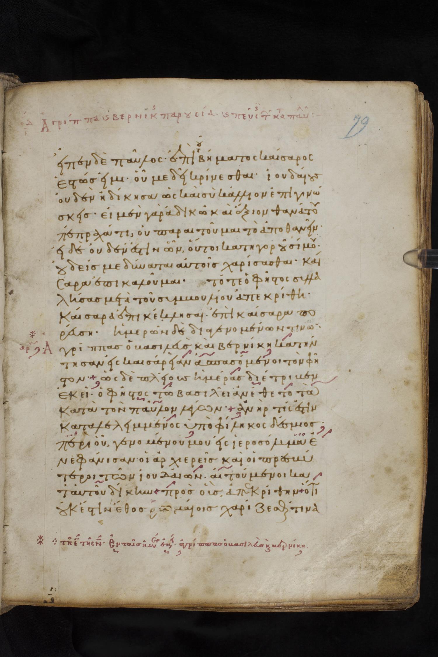 Eleventh century minuscule of the Apostolos, Paul, and Revelation on parchment; 327 leaves, 1 column, 22 lines per column. Images were taken at the National Library of Greece in Athens.