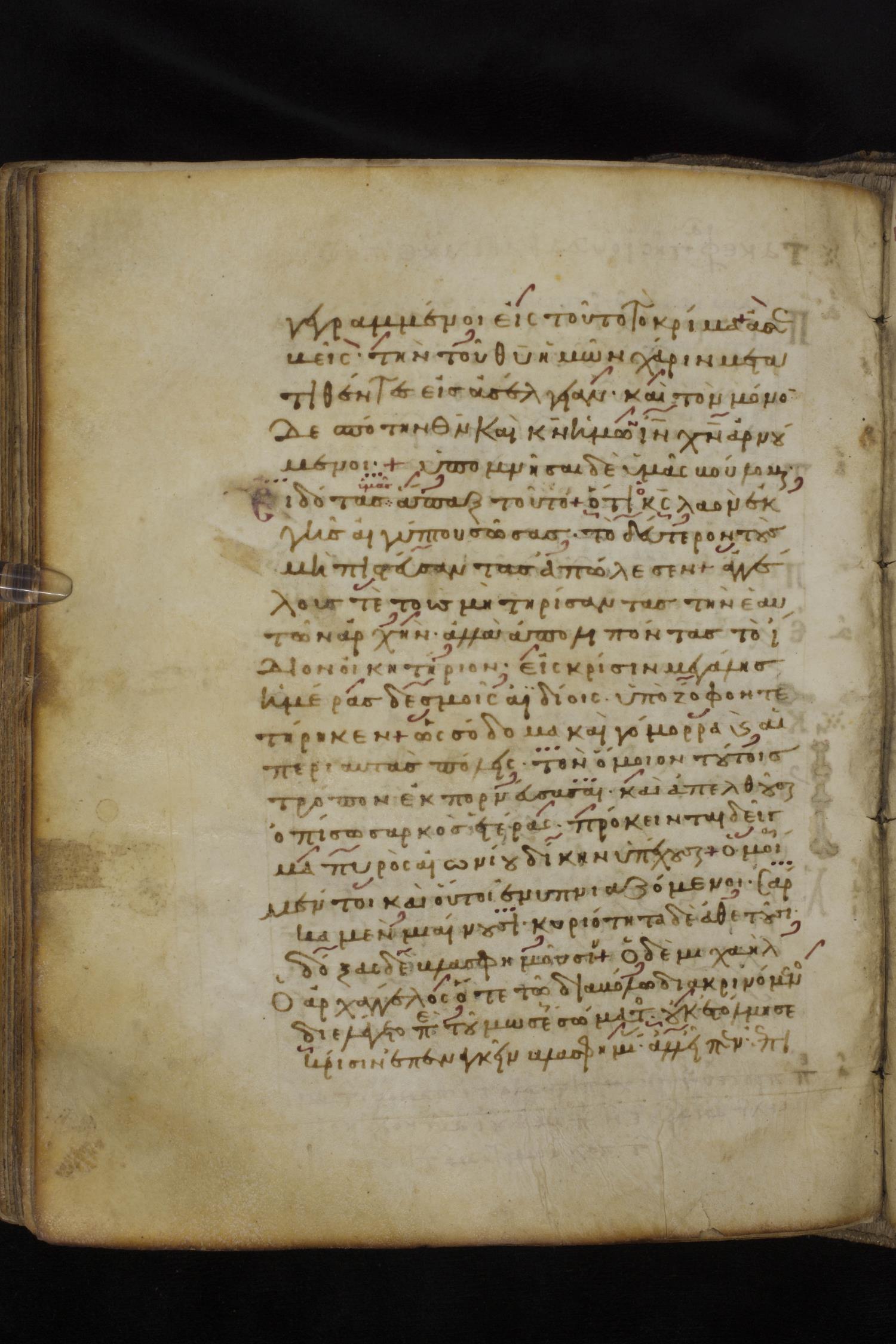 Eleventh century minuscule of the Apostolos, Paul, and Revelation on parchment; 327 leaves, 1 column, 22 lines per column. Images were taken at the National Library of Greece in Athens.