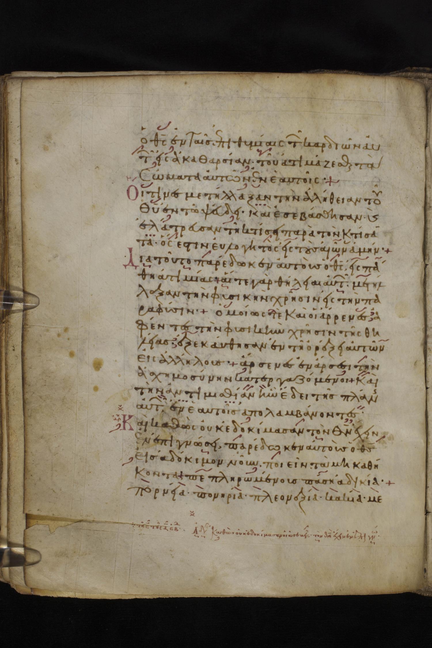 Eleventh century minuscule of the Apostolos, Paul, and Revelation on parchment; 327 leaves, 1 column, 22 lines per column. Images were taken at the National Library of Greece in Athens.