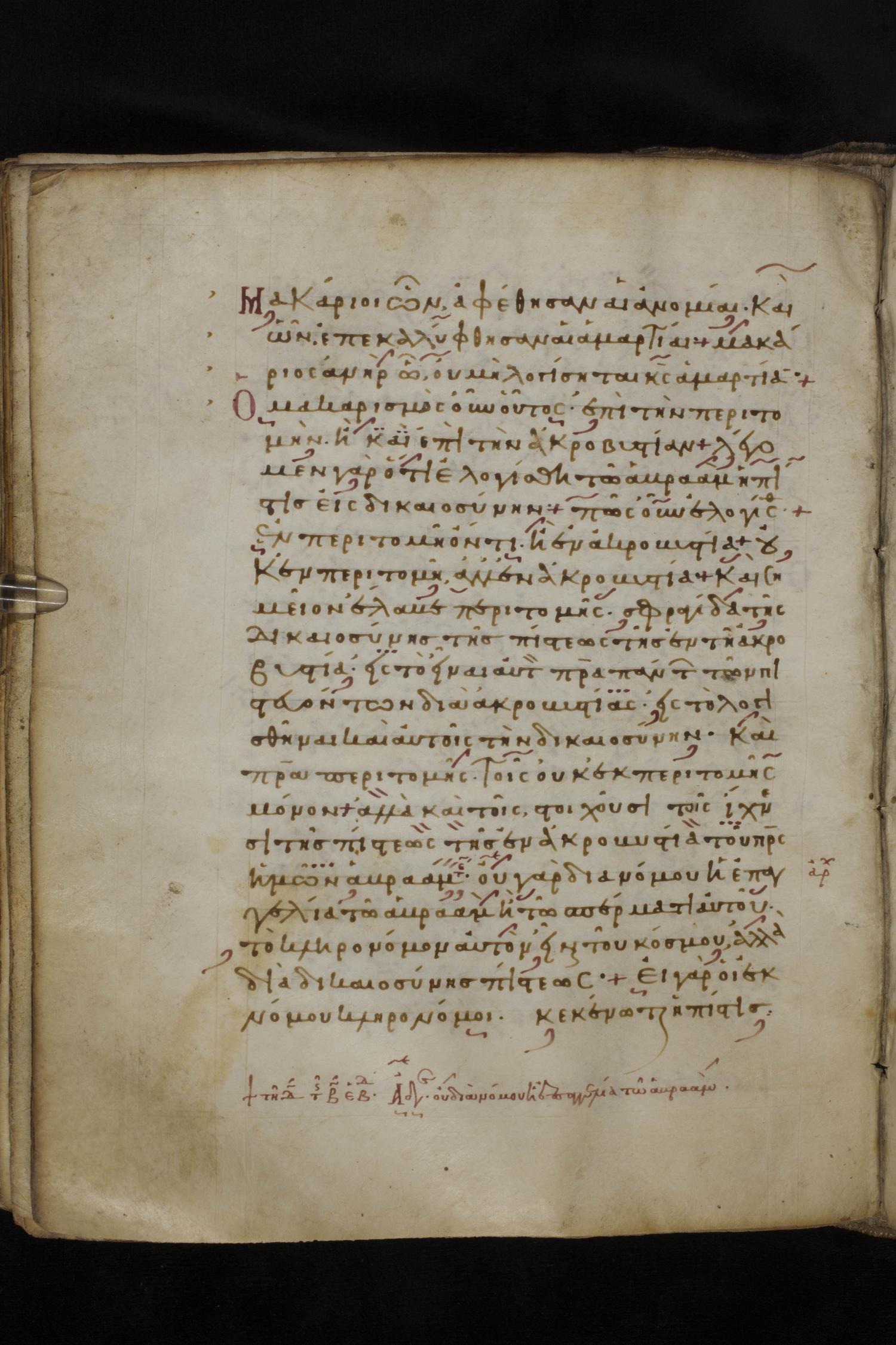 Eleventh century minuscule of the Apostolos, Paul, and Revelation on parchment; 327 leaves, 1 column, 22 lines per column. Images were taken at the National Library of Greece in Athens.