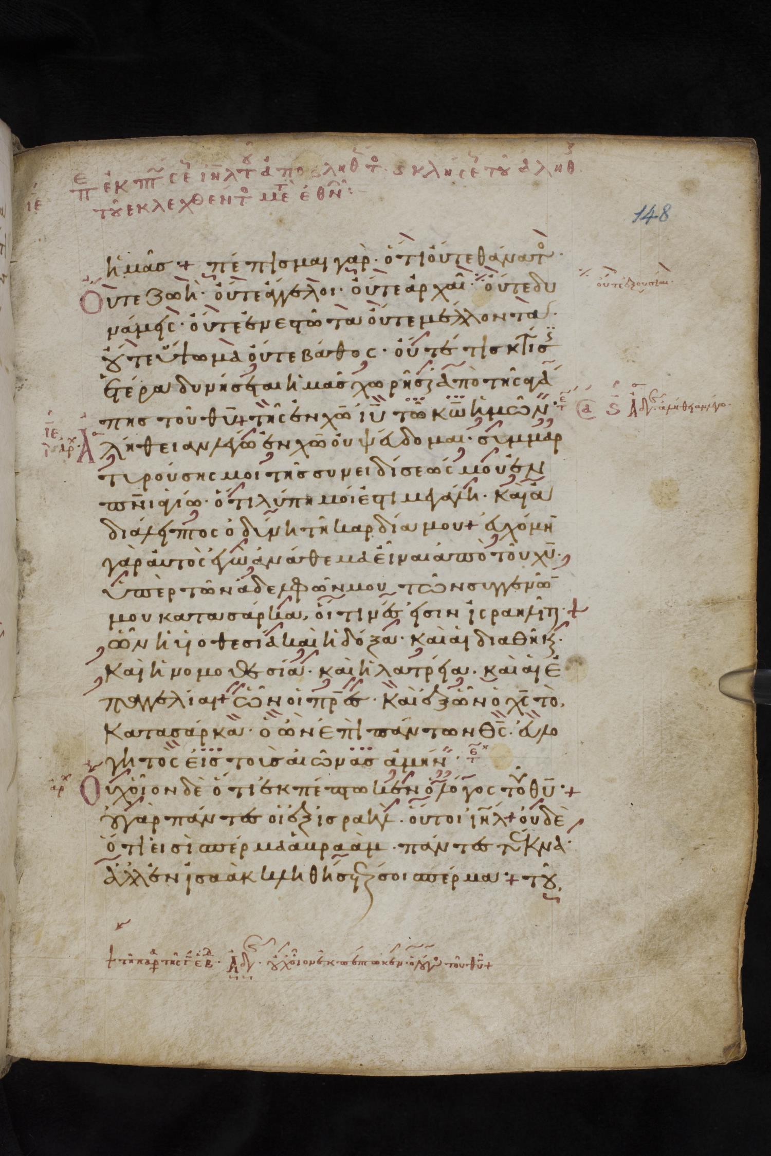 Eleventh century minuscule of the Apostolos, Paul, and Revelation on parchment; 327 leaves, 1 column, 22 lines per column. Images were taken at the National Library of Greece in Athens.