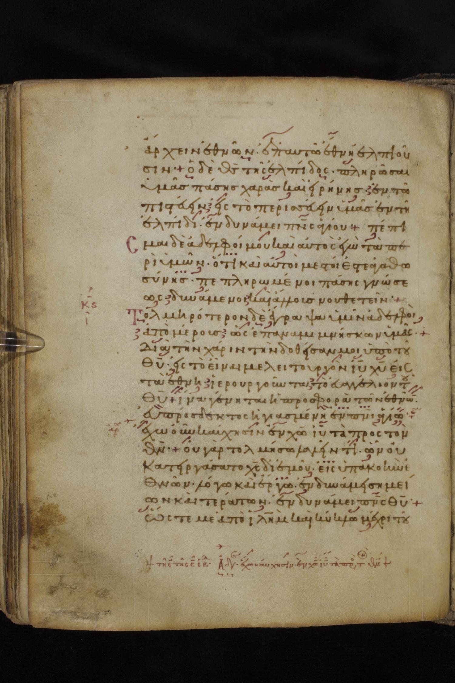 Eleventh century minuscule of the Apostolos, Paul, and Revelation on parchment; 327 leaves, 1 column, 22 lines per column. Images were taken at the National Library of Greece in Athens.