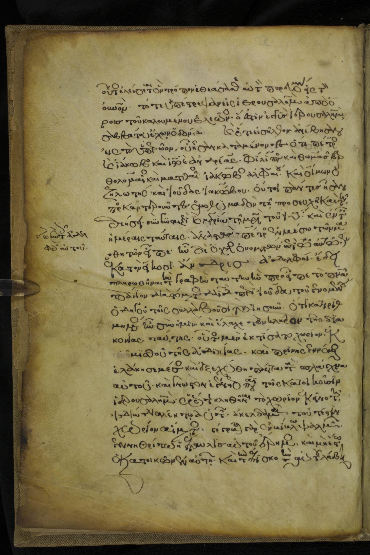 Tenth century minuscule of the Apostolos on parchment; 86 leaves, 1 column, 25-26 lines per column. Images were taken at the National Library of Greece in Athens.