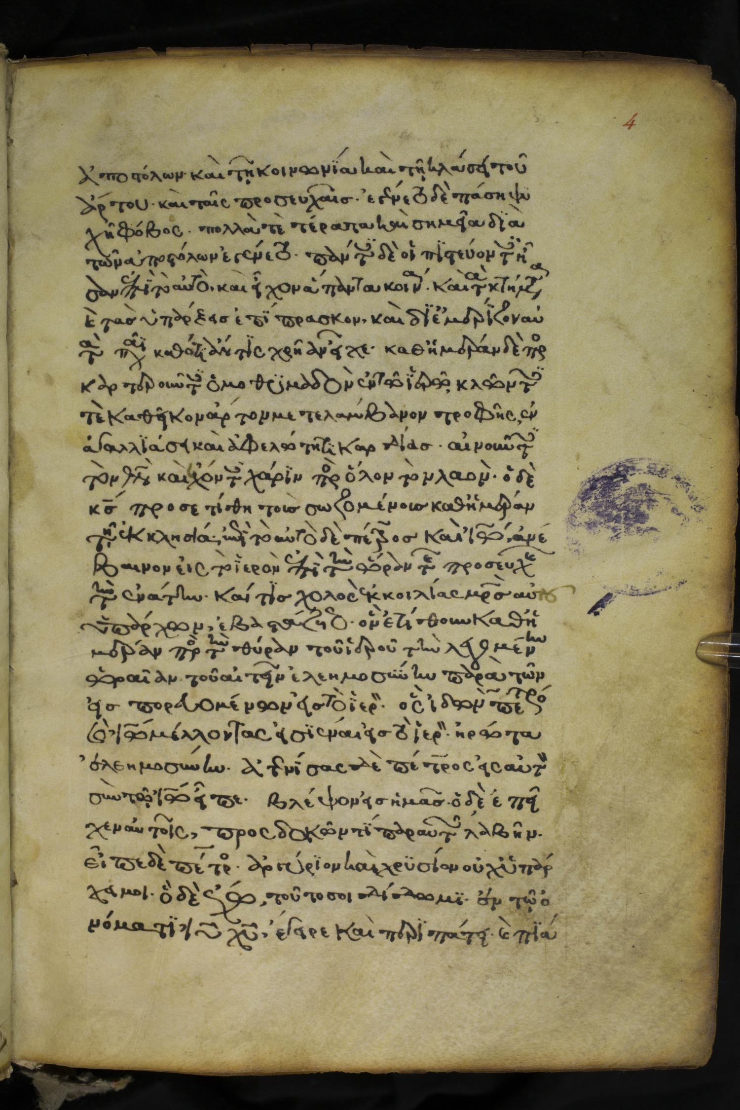 Tenth century minuscule of the Apostolos on parchment; 86 leaves, 1 column, 25-26 lines per column. Images were taken at the National Library of Greece in Athens.