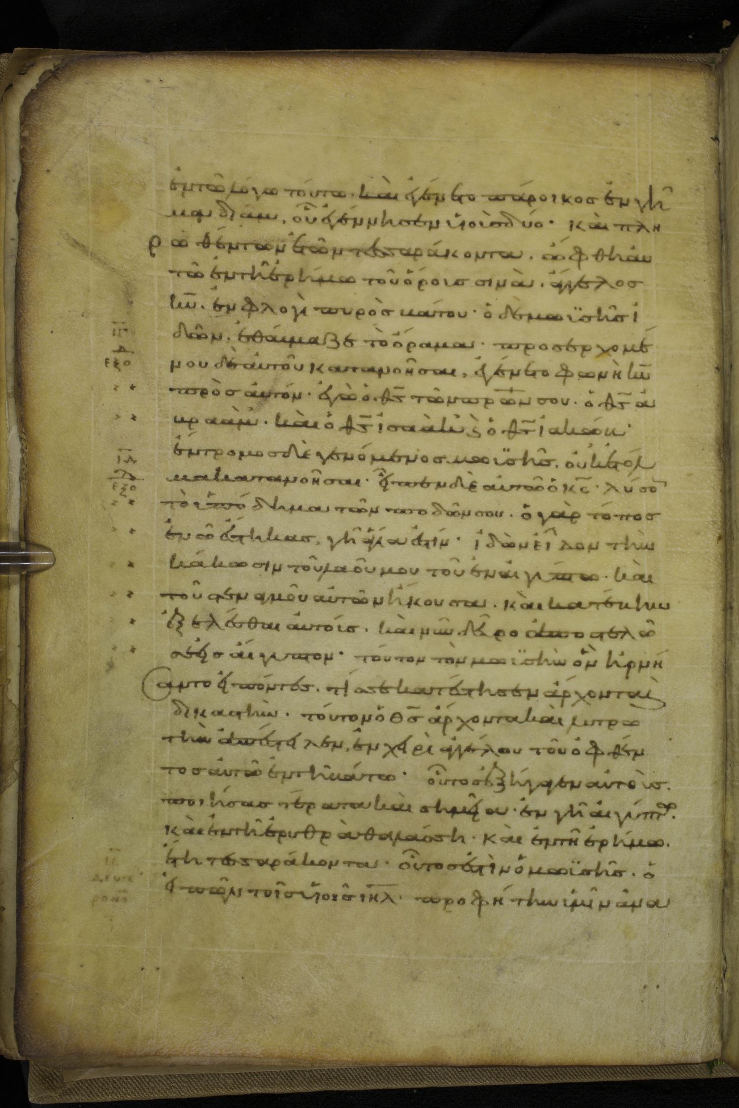 Tenth century minuscule of the Apostolos on parchment; 86 leaves, 1 column, 25-26 lines per column. Images were taken at the National Library of Greece in Athens.