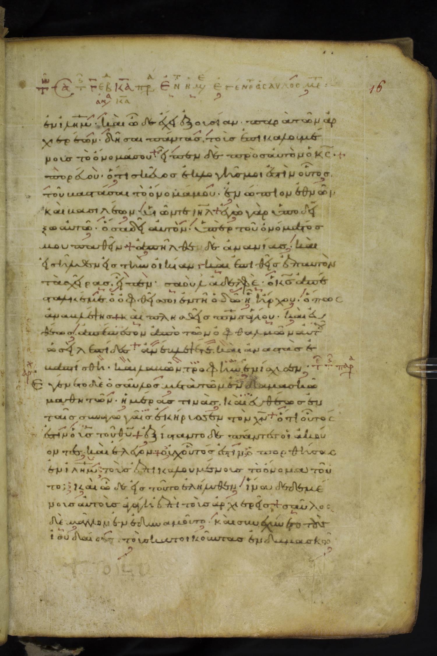 Tenth century minuscule of the Apostolos on parchment; 86 leaves, 1 column, 25-26 lines per column. Images were taken at the National Library of Greece in Athens.