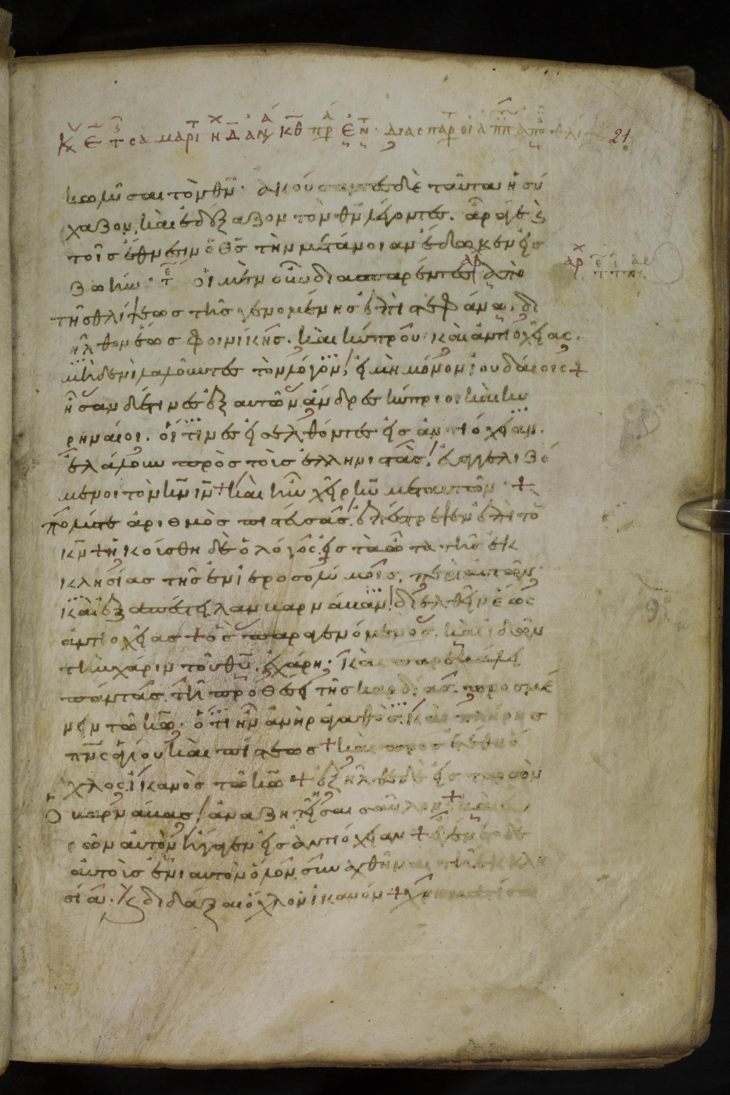 Tenth century minuscule of the Apostolos on parchment; 86 leaves, 1 column, 25-26 lines per column. Images were taken at the National Library of Greece in Athens.