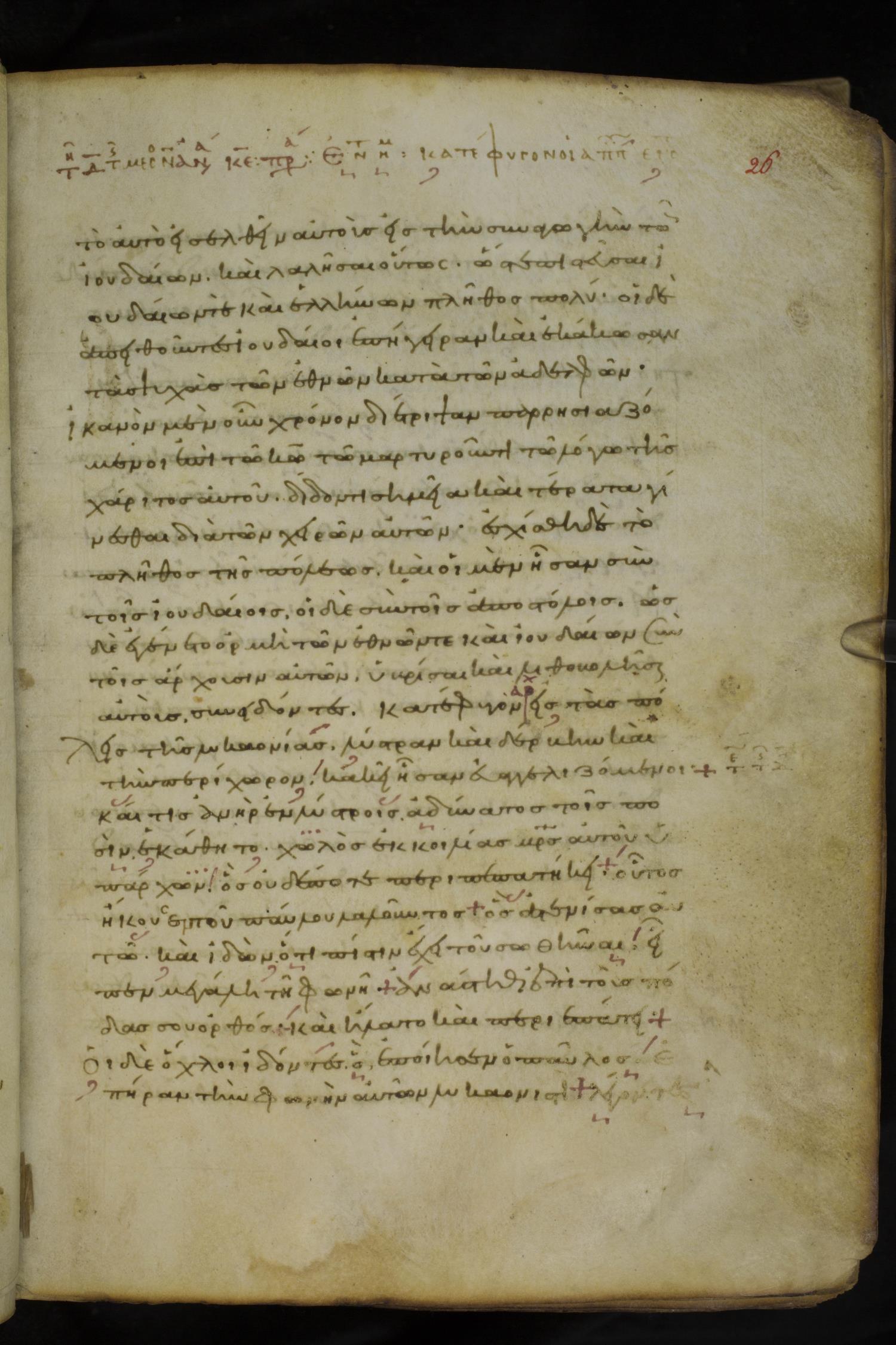 Tenth century minuscule of the Apostolos on parchment; 86 leaves, 1 column, 25-26 lines per column. Images were taken at the National Library of Greece in Athens.