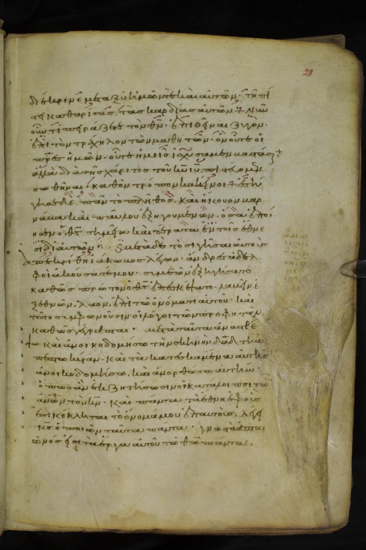 Tenth century minuscule of the Apostolos on parchment; 86 leaves, 1 column, 25-26 lines per column. Images were taken at the National Library of Greece in Athens.