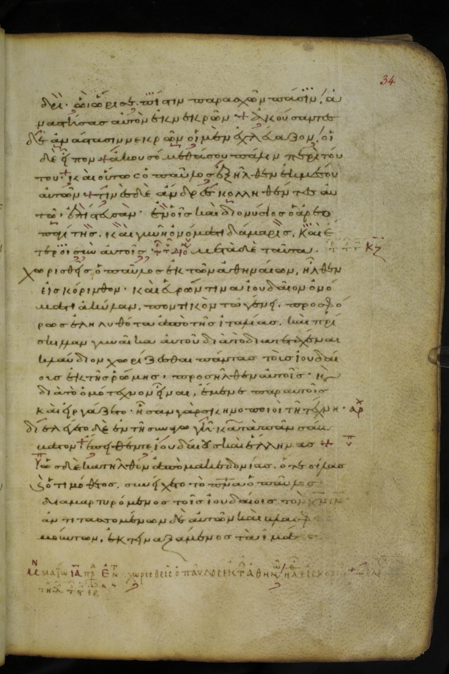 Tenth century minuscule of the Apostolos on parchment; 86 leaves, 1 column, 25-26 lines per column. Images were taken at the National Library of Greece in Athens.