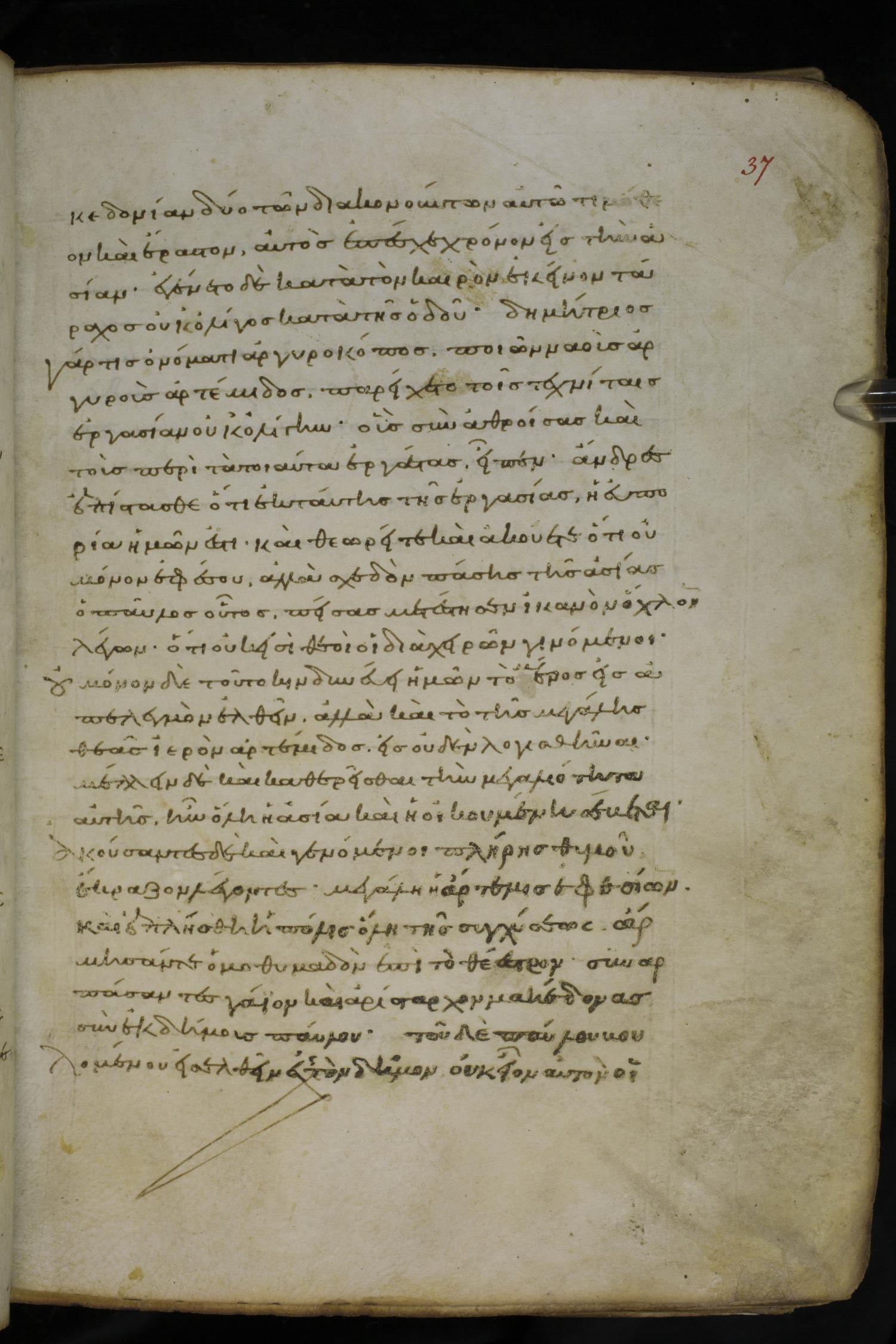 Tenth century minuscule of the Apostolos on parchment; 86 leaves, 1 column, 25-26 lines per column. Images were taken at the National Library of Greece in Athens.