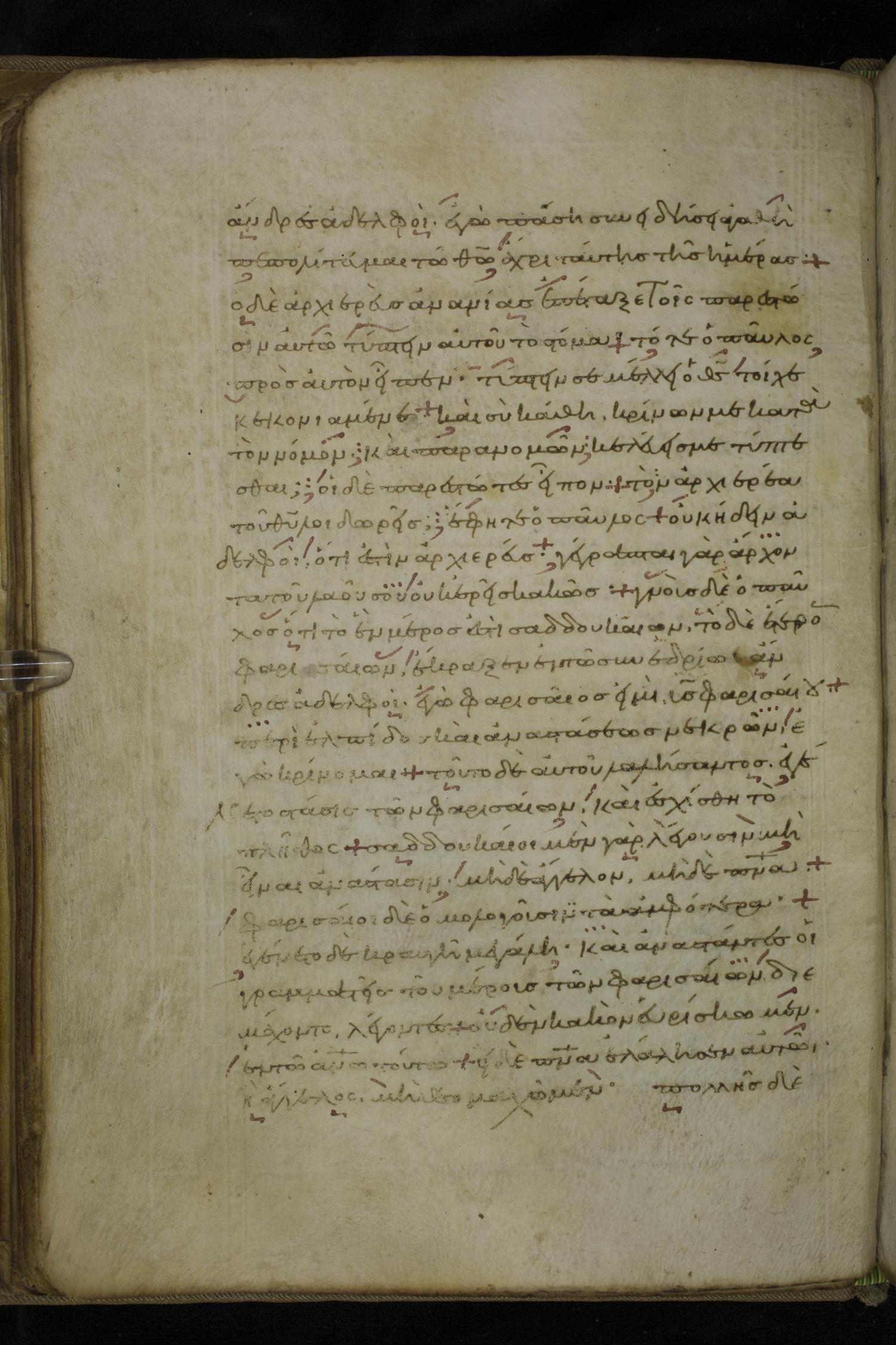 Tenth century minuscule of the Apostolos on parchment; 86 leaves, 1 column, 25-26 lines per column. Images were taken at the National Library of Greece in Athens.