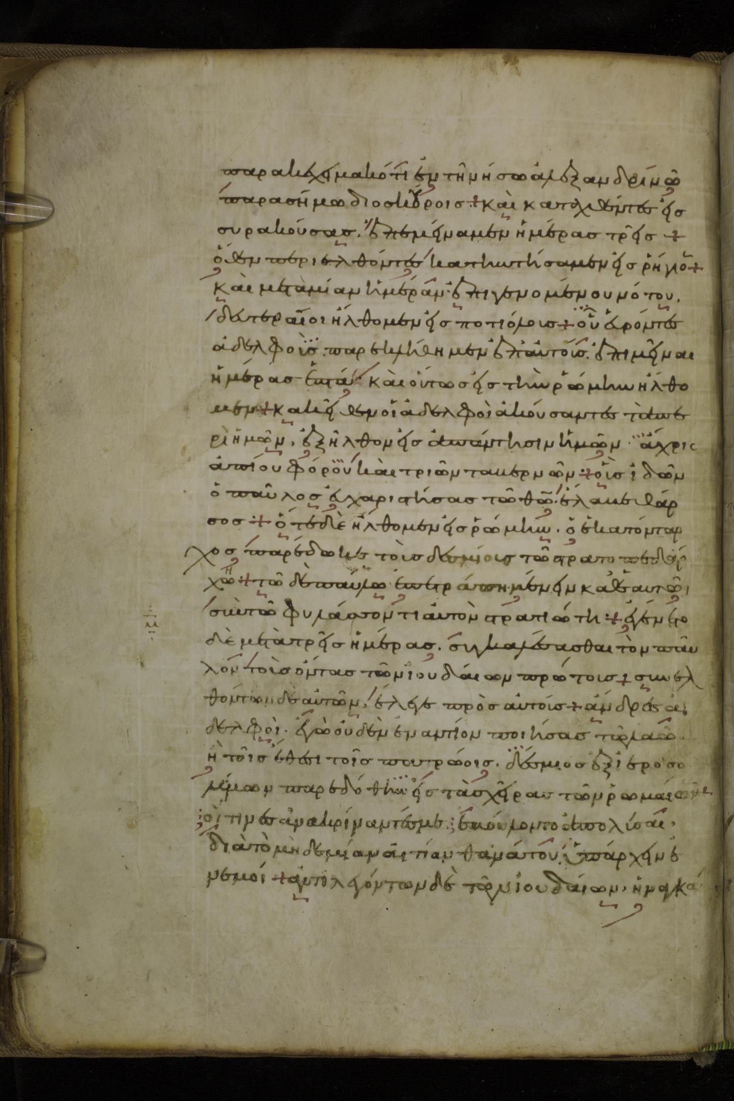 Tenth century minuscule of the Apostolos on parchment; 86 leaves, 1 column, 25-26 lines per column. Images were taken at the National Library of Greece in Athens.