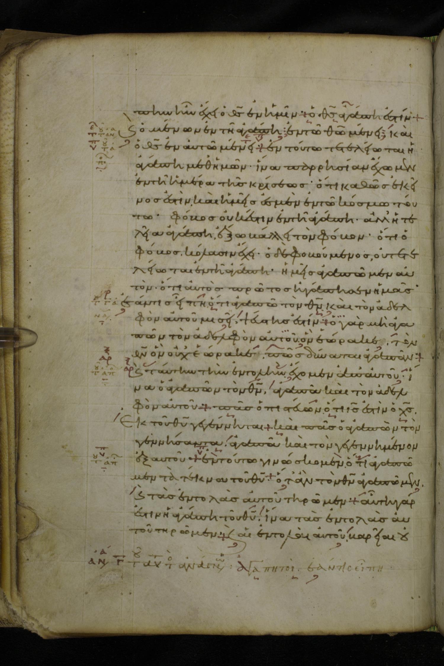 Tenth century minuscule of the Apostolos on parchment; 86 leaves, 1 column, 25-26 lines per column. Images were taken at the National Library of Greece in Athens.