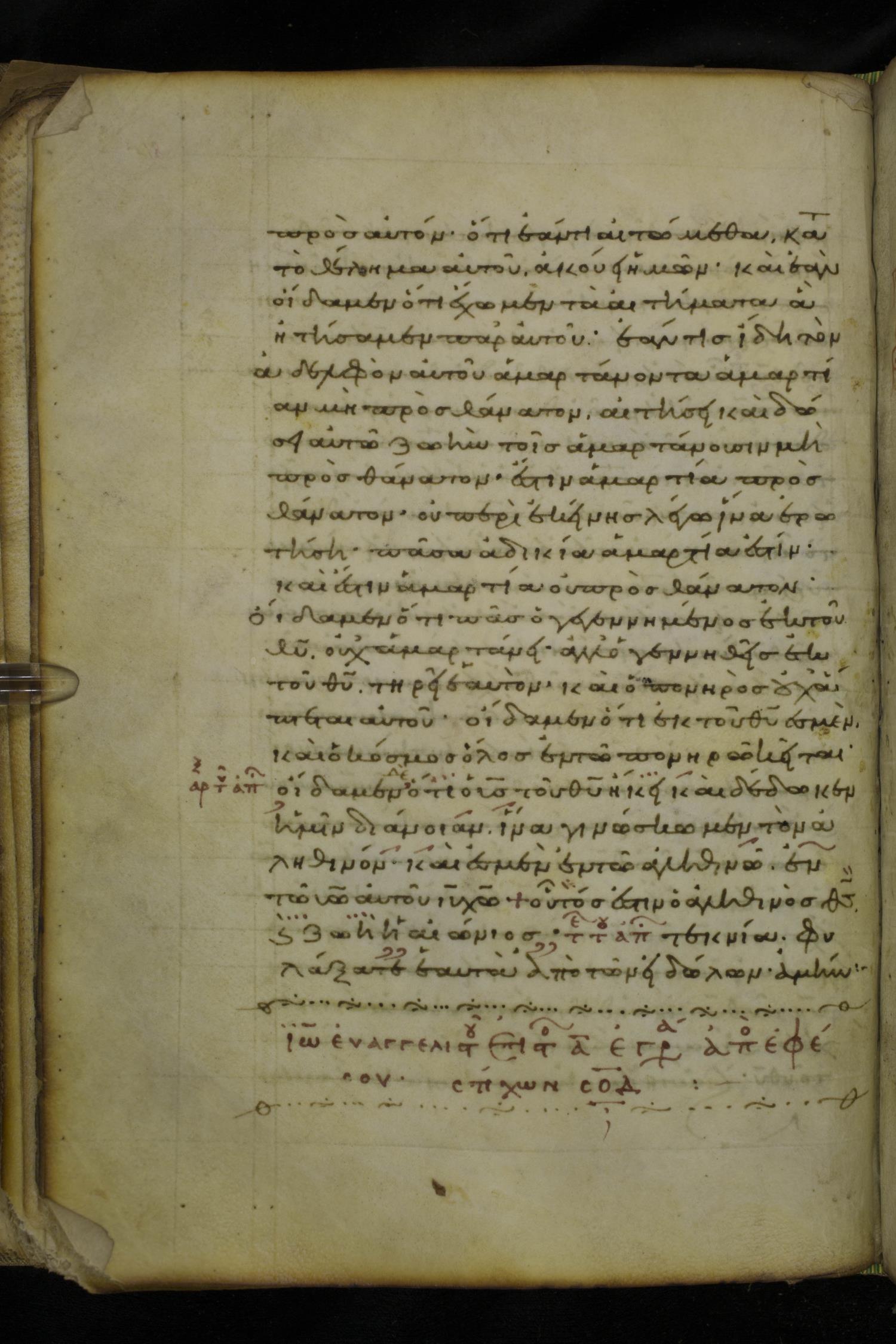Tenth century minuscule of the Apostolos on parchment; 86 leaves, 1 column, 25-26 lines per column. Images were taken at the National Library of Greece in Athens.