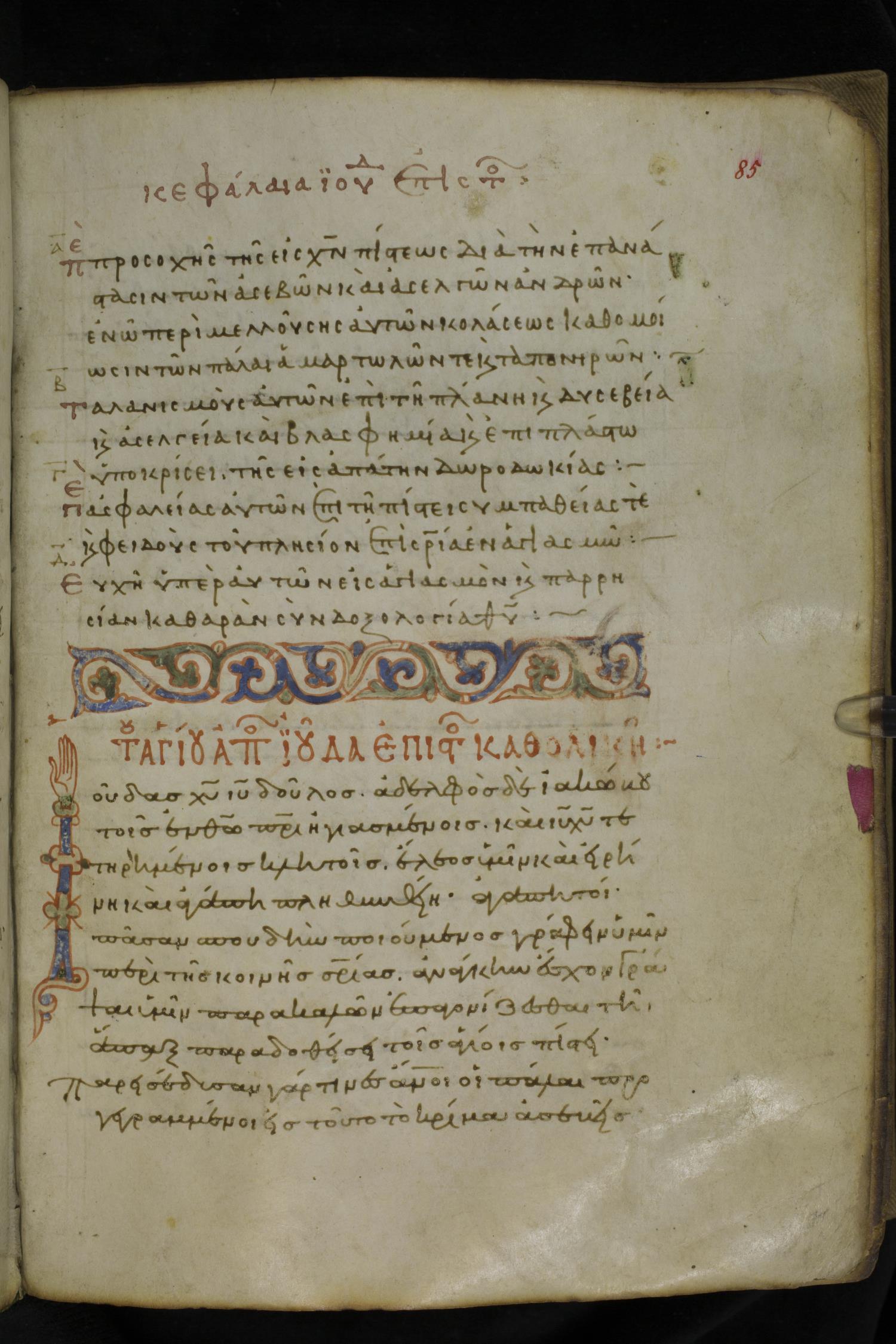 Tenth century minuscule of the Apostolos on parchment; 86 leaves, 1 column, 25-26 lines per column. Images were taken at the National Library of Greece in Athens.