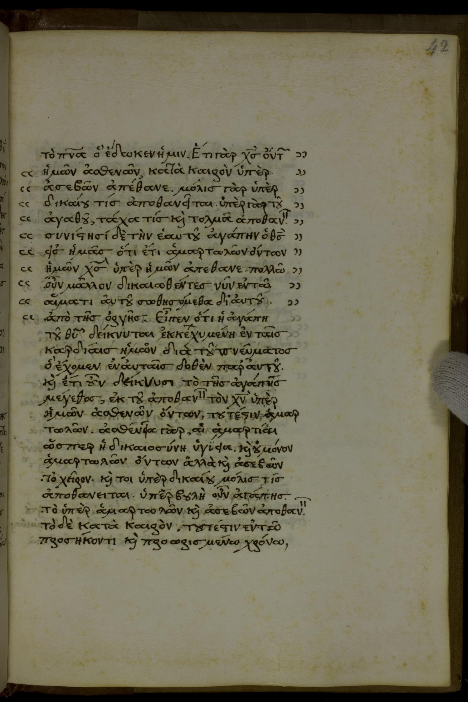 Sixteenth-century manuscript of Paul with commentary on paper. 136 leaves, single column, 25-31 lines per column. By agreement with the owners of the manuscript, the images posted online are 100dpi. For recent digital images, visit BML Online.