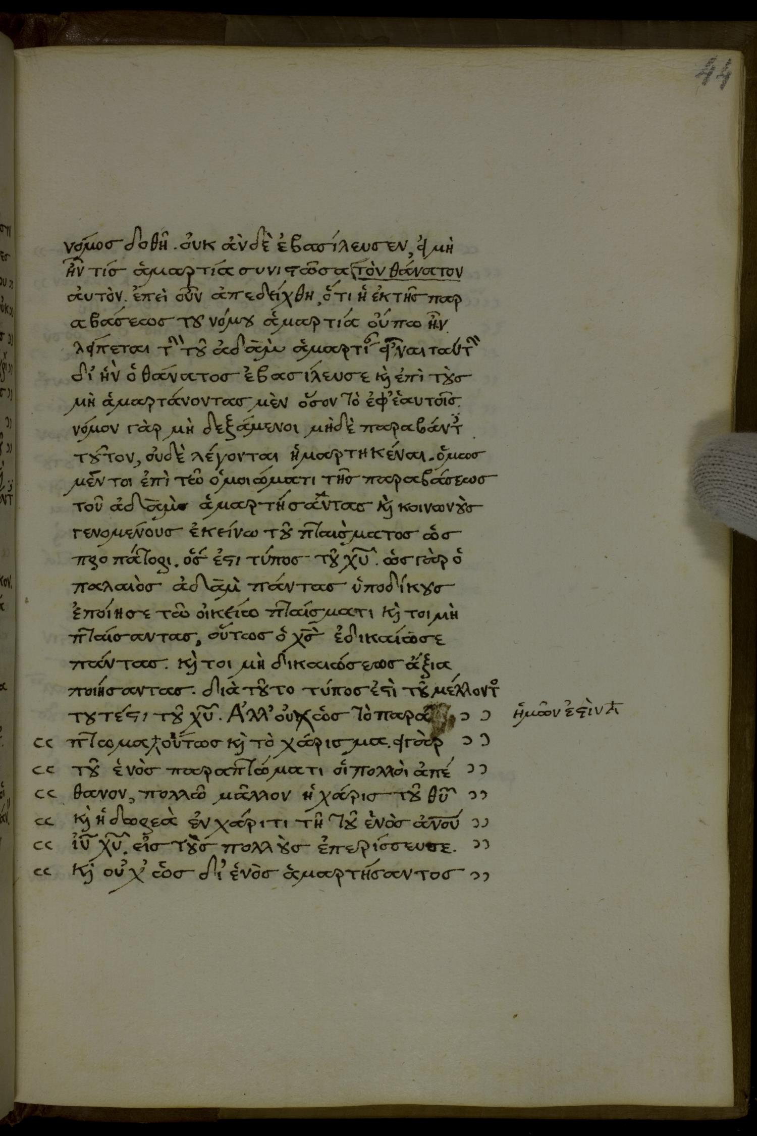 Sixteenth-century manuscript of Paul with commentary on paper. 136 leaves, single column, 25-31 lines per column. By agreement with the owners of the manuscript, the images posted online are 100dpi. For recent digital images, visit BML Online.