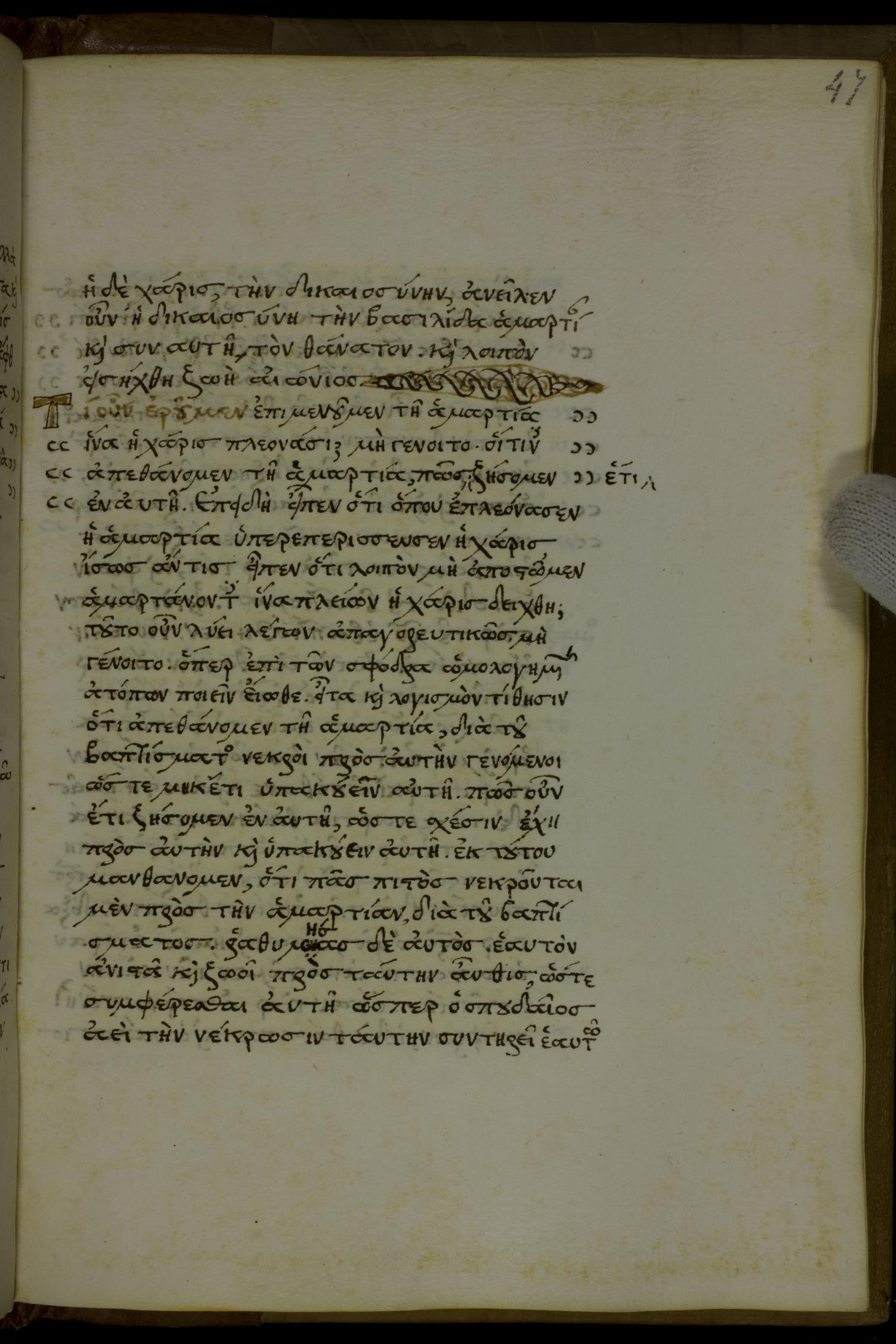 Τί οὖν ἐροῦμεν; ἐπιμένωμεν τῇ ἁμαρτίᾳ, ἵνα ἡ χάρις πλεονάσῃ;