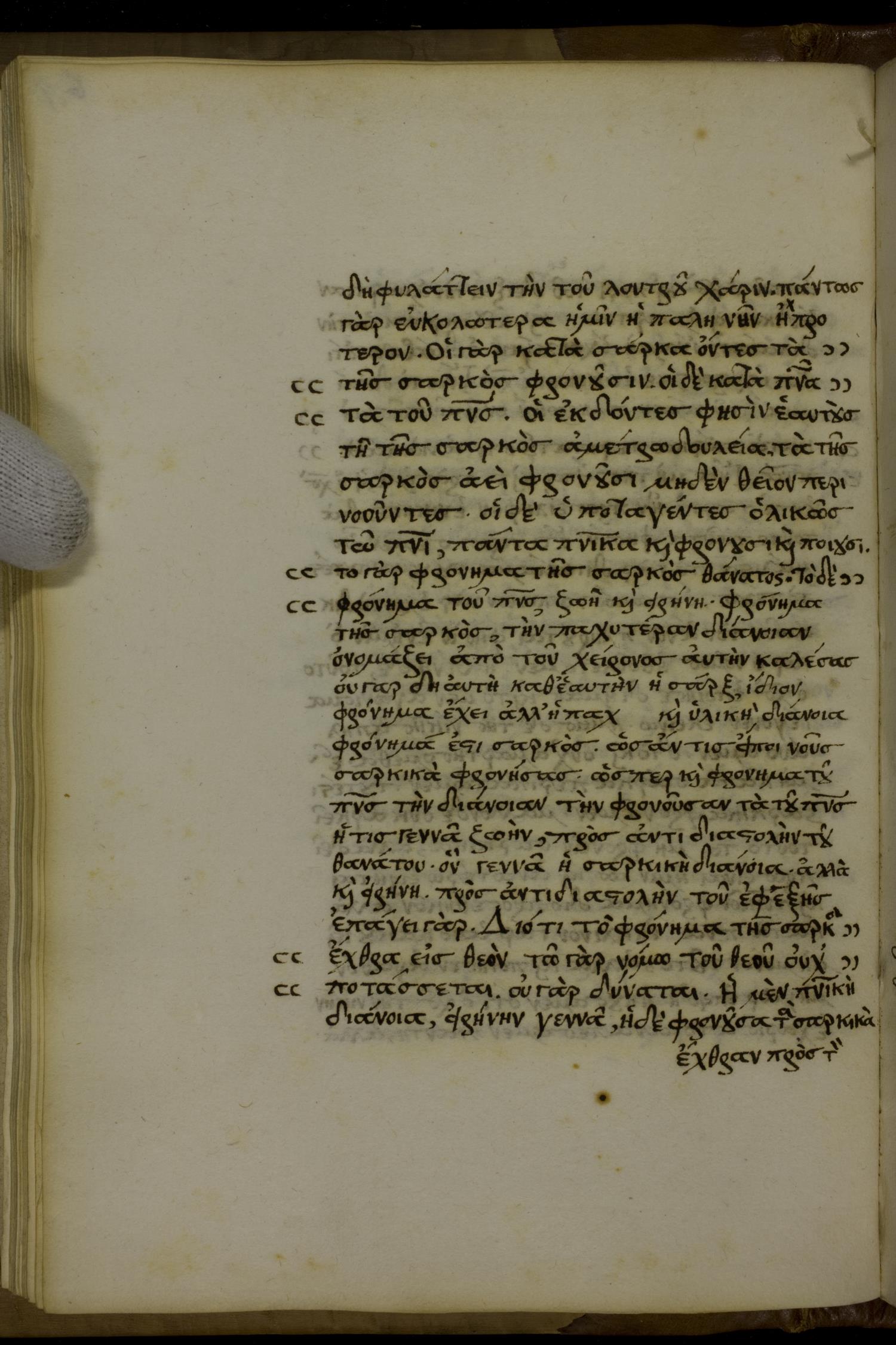 τὸ γὰρ φρόνημα τῆς σαρκὸς θάνατος, τὸ δὲ φρόνημα τοῦ πνεύματος ζωὴ καὶ εἰρήνη·