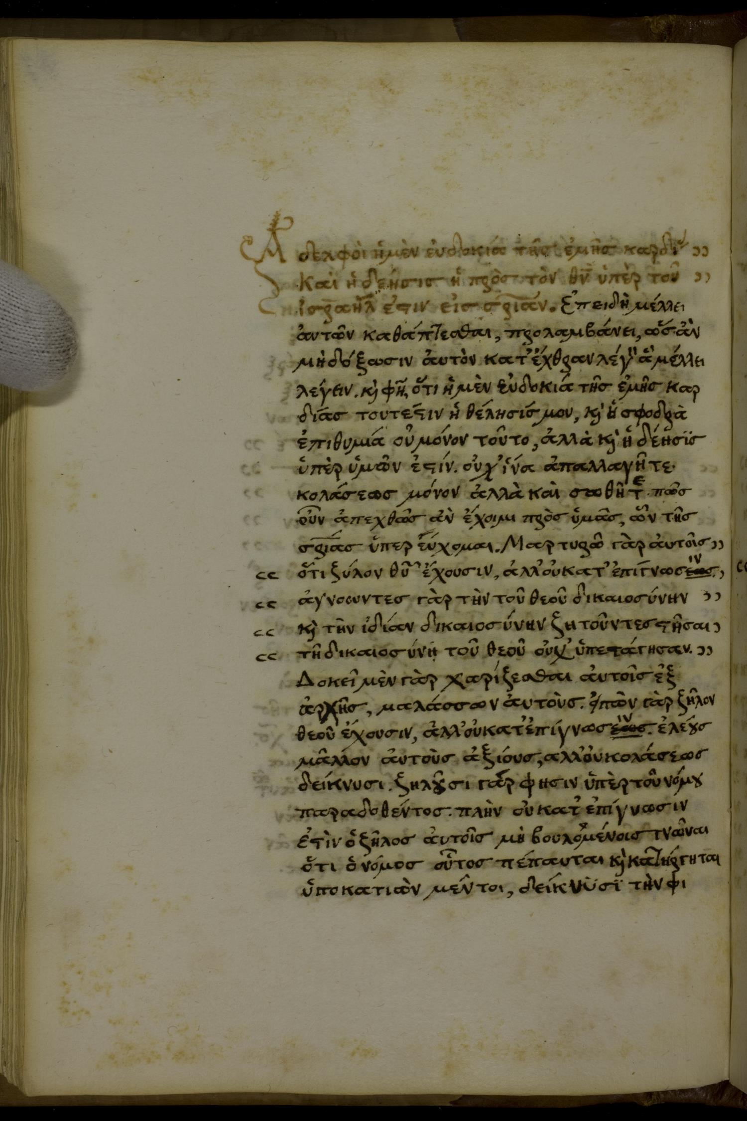 Sixteenth-century manuscript of Paul with commentary on paper. 136 leaves, single column, 25-31 lines per column. By agreement with the owners of the manuscript, the images posted online are 100dpi. For recent digital images, visit BML Online.