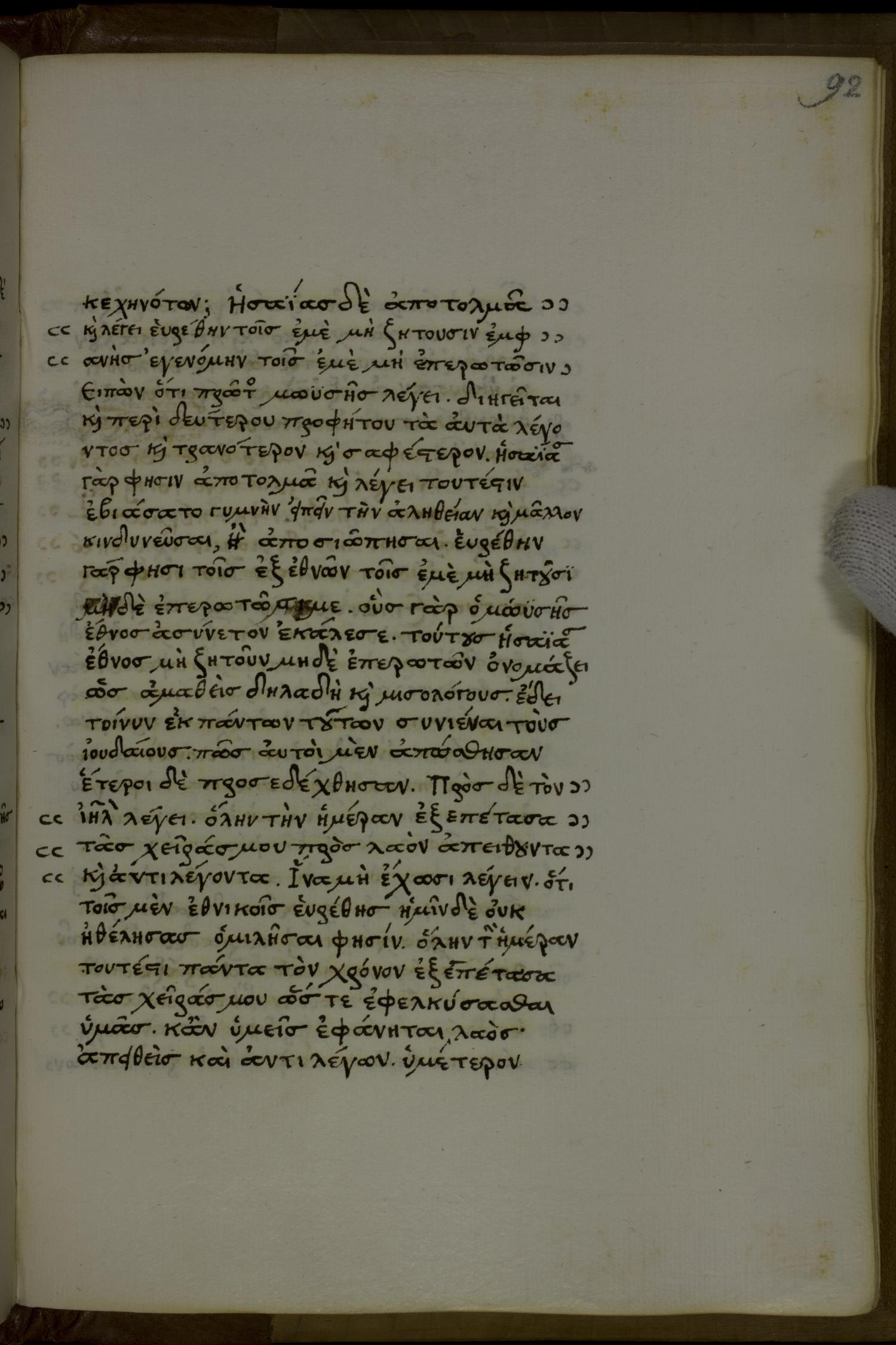 Ἠσαίας δὲ ἀποτολμᾷ καὶ λέγει Εὑρέθην {ἐν} τοῖς ἐμὲ μὴ ζητοῦσιν, ἐμφανὴς ἐγενόμην τοῖς ἐμὲ μὴ ἐπερωτῶσιν.