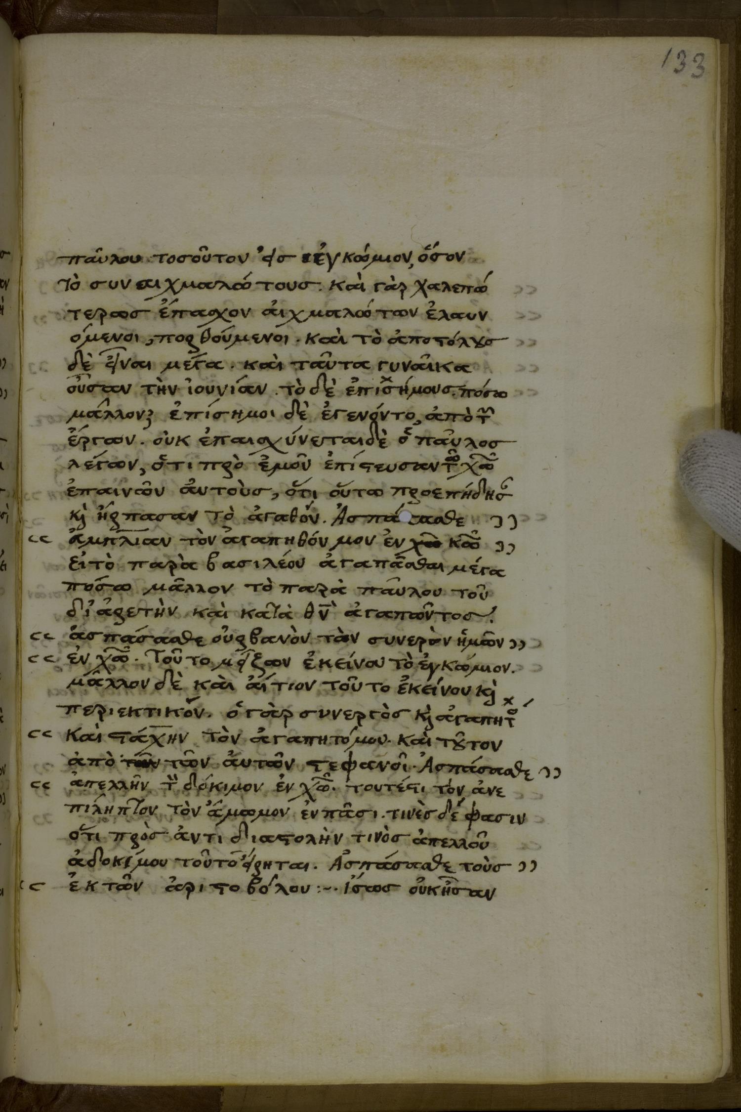 Sixteenth-century manuscript of Paul with commentary on paper. 136 leaves, single column, 25-31 lines per column. By agreement with the owners of the manuscript, the images posted online are 100dpi. For recent digital images, visit BML Online.