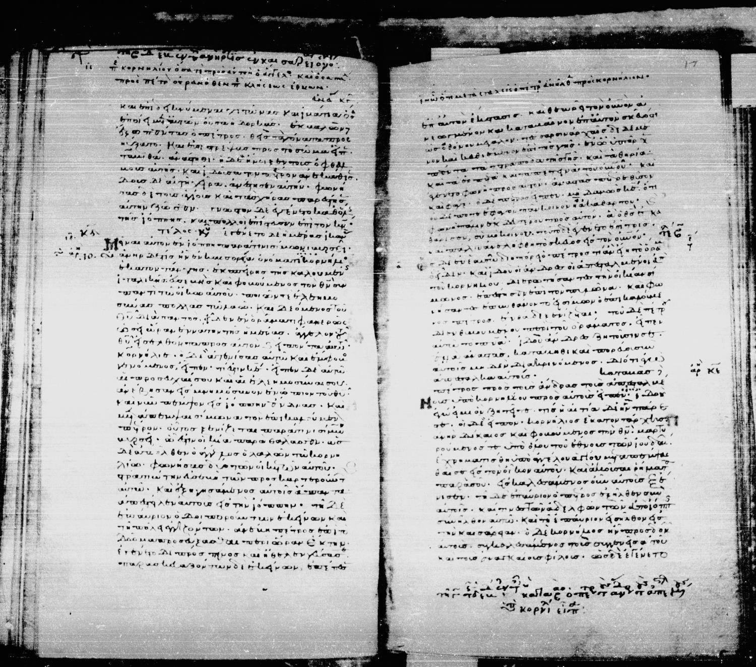 Twelfth century minuscule of the Gospels, Apostolos, and Paul on parchment; 297 leaves, single column, 38 lines per column. Digital images are from microfilm.