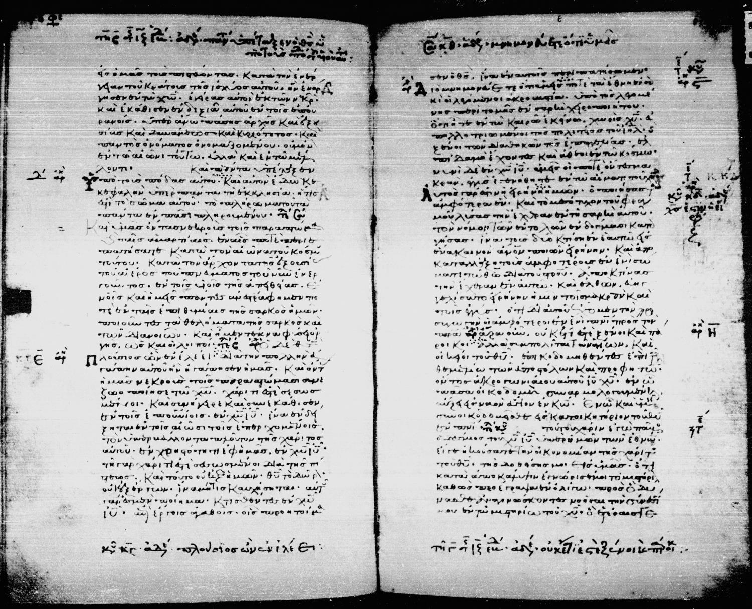Twelfth century minuscule of the Gospels, Apostolos, and Paul on parchment; 297 leaves, single column, 38 lines per column. Digital images are from microfilm.