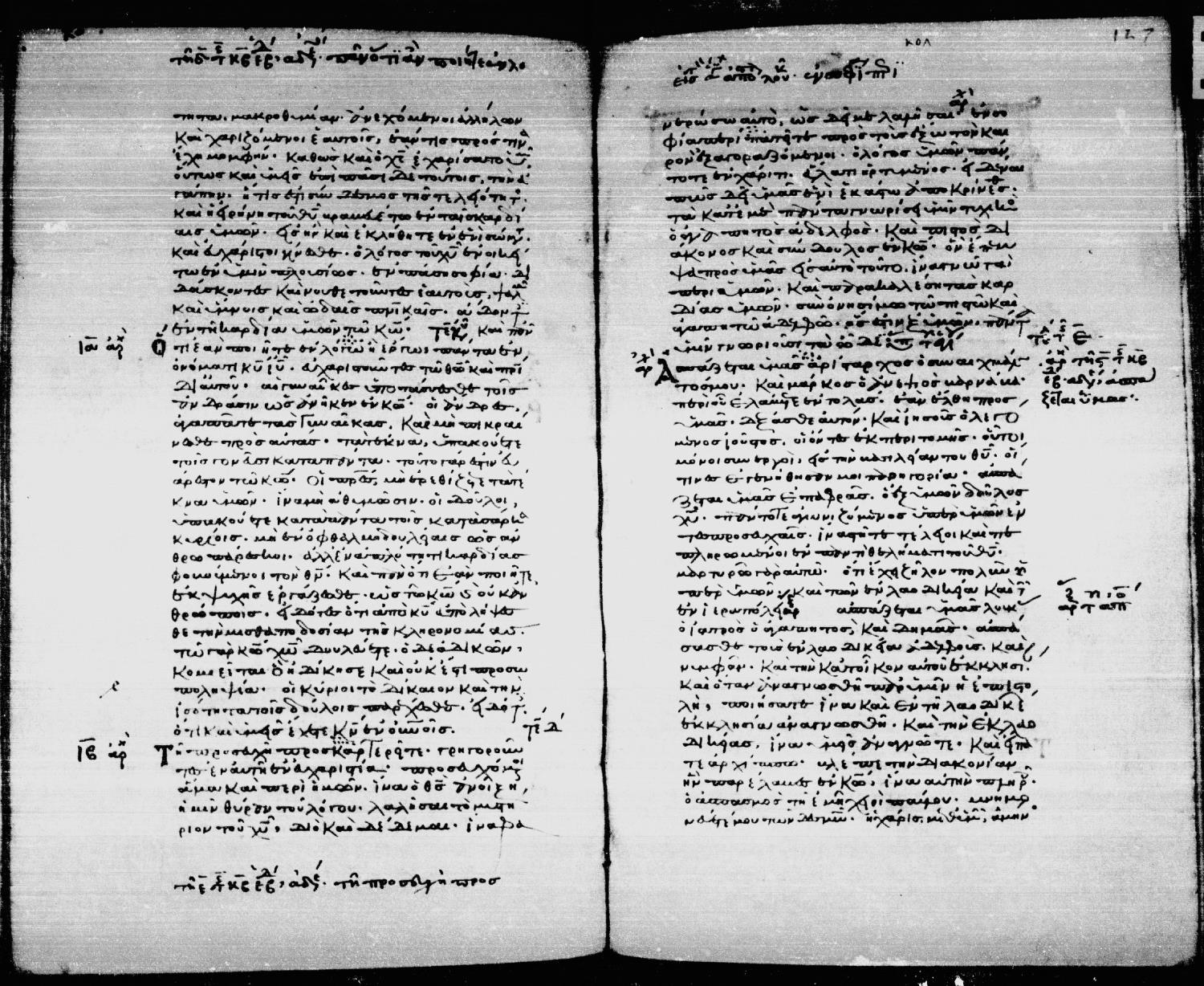 Twelfth century minuscule of the Gospels, Apostolos, and Paul on parchment; 297 leaves, single column, 38 lines per column. Digital images are from microfilm.