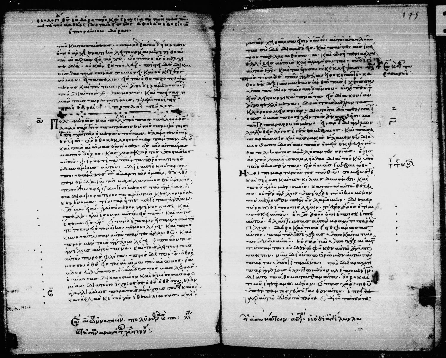 Twelfth century minuscule of the Gospels, Apostolos, and Paul on parchment; 297 leaves, single column, 38 lines per column. Digital images are from microfilm.