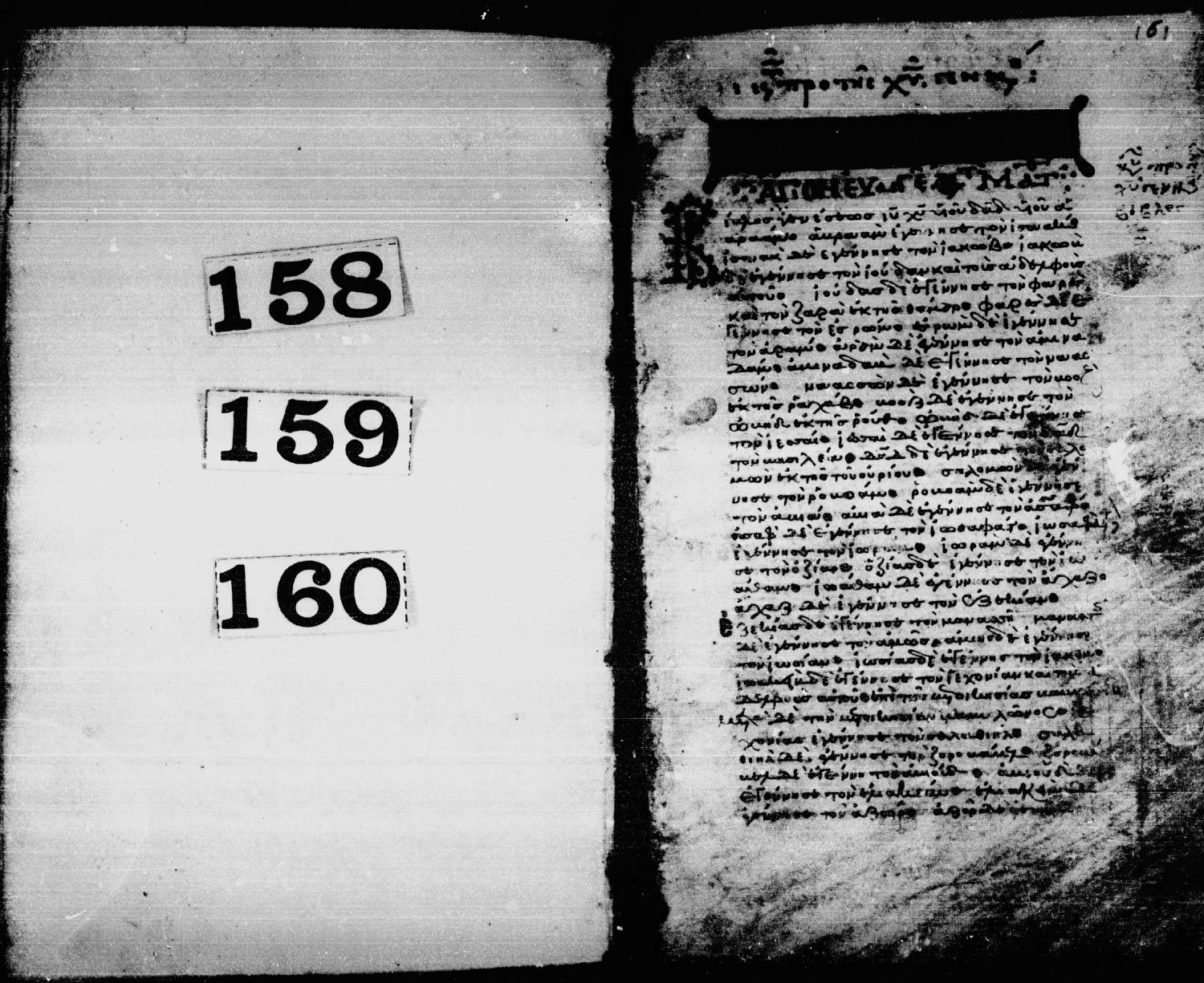 Twelfth century minuscule of the Gospels, Apostolos, and Paul on parchment; 297 leaves, single column, 38 lines per column. Digital images are from microfilm.