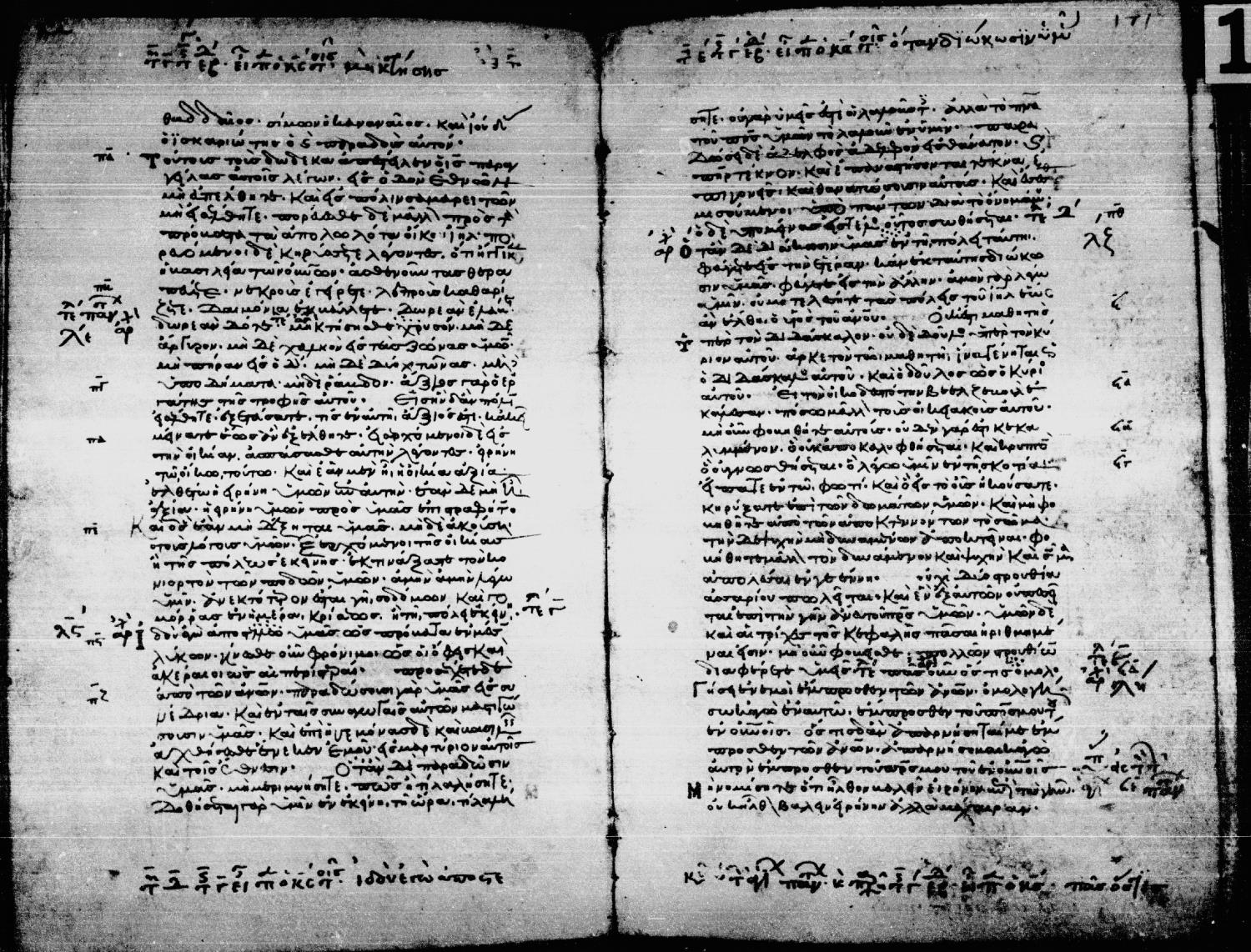 Twelfth century minuscule of the Gospels, Apostolos, and Paul on parchment; 297 leaves, single column, 38 lines per column. Digital images are from microfilm.