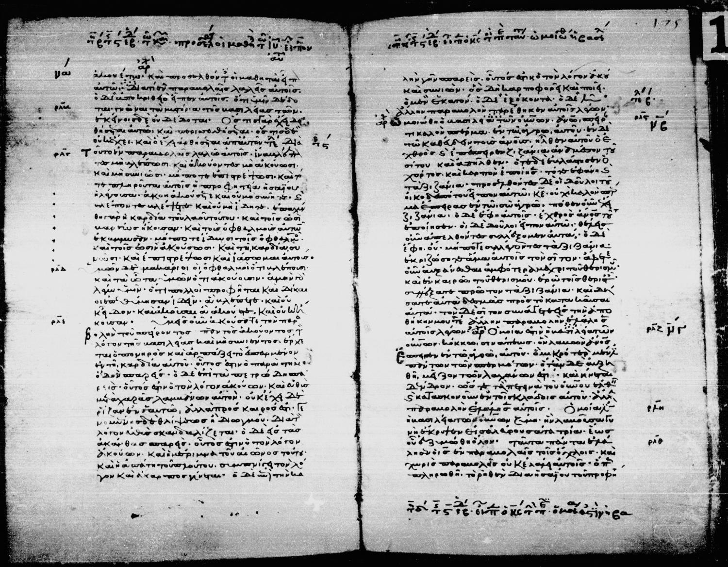 Twelfth century minuscule of the Gospels, Apostolos, and Paul on parchment; 297 leaves, single column, 38 lines per column. Digital images are from microfilm.