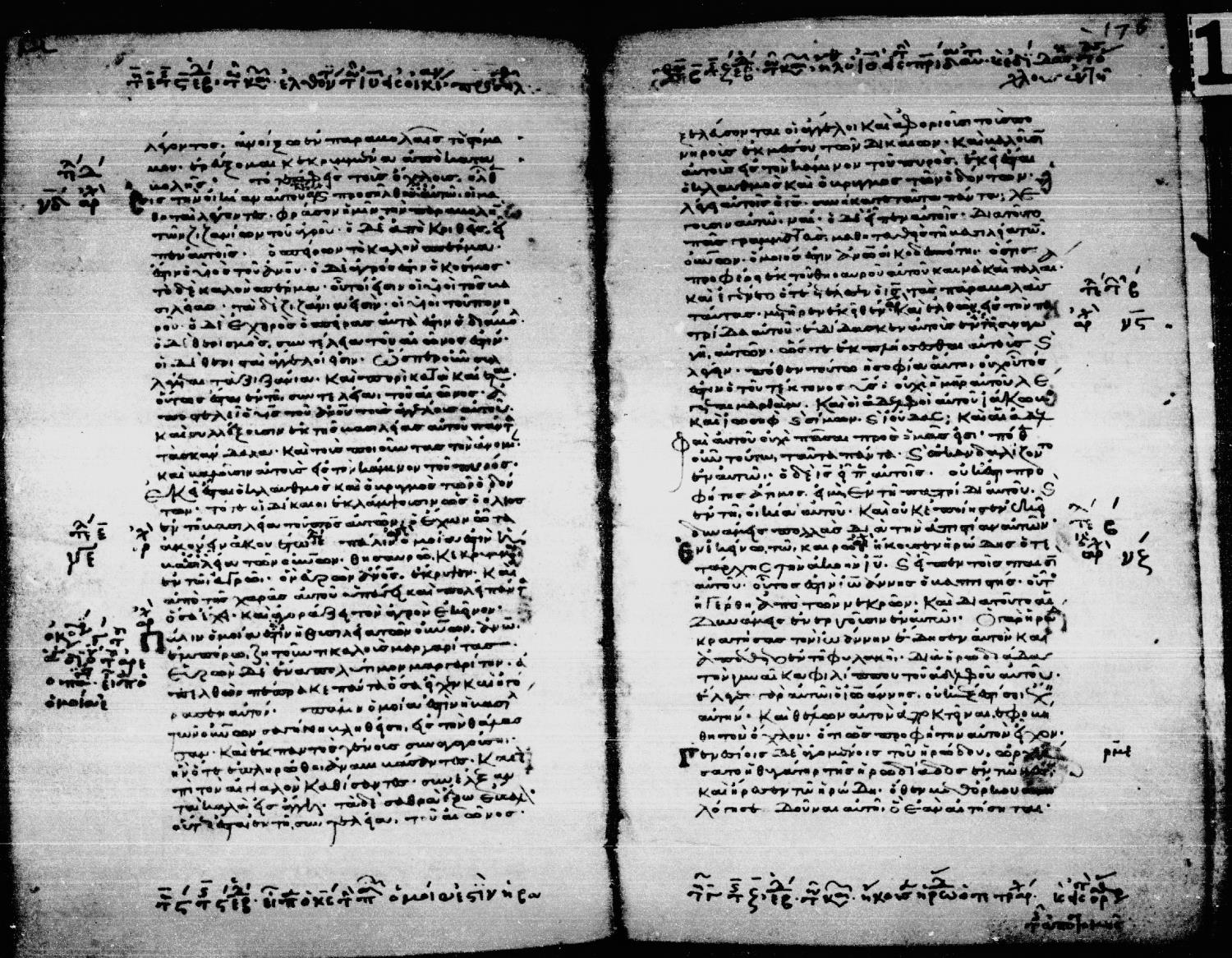 Twelfth century minuscule of the Gospels, Apostolos, and Paul on parchment; 297 leaves, single column, 38 lines per column. Digital images are from microfilm.